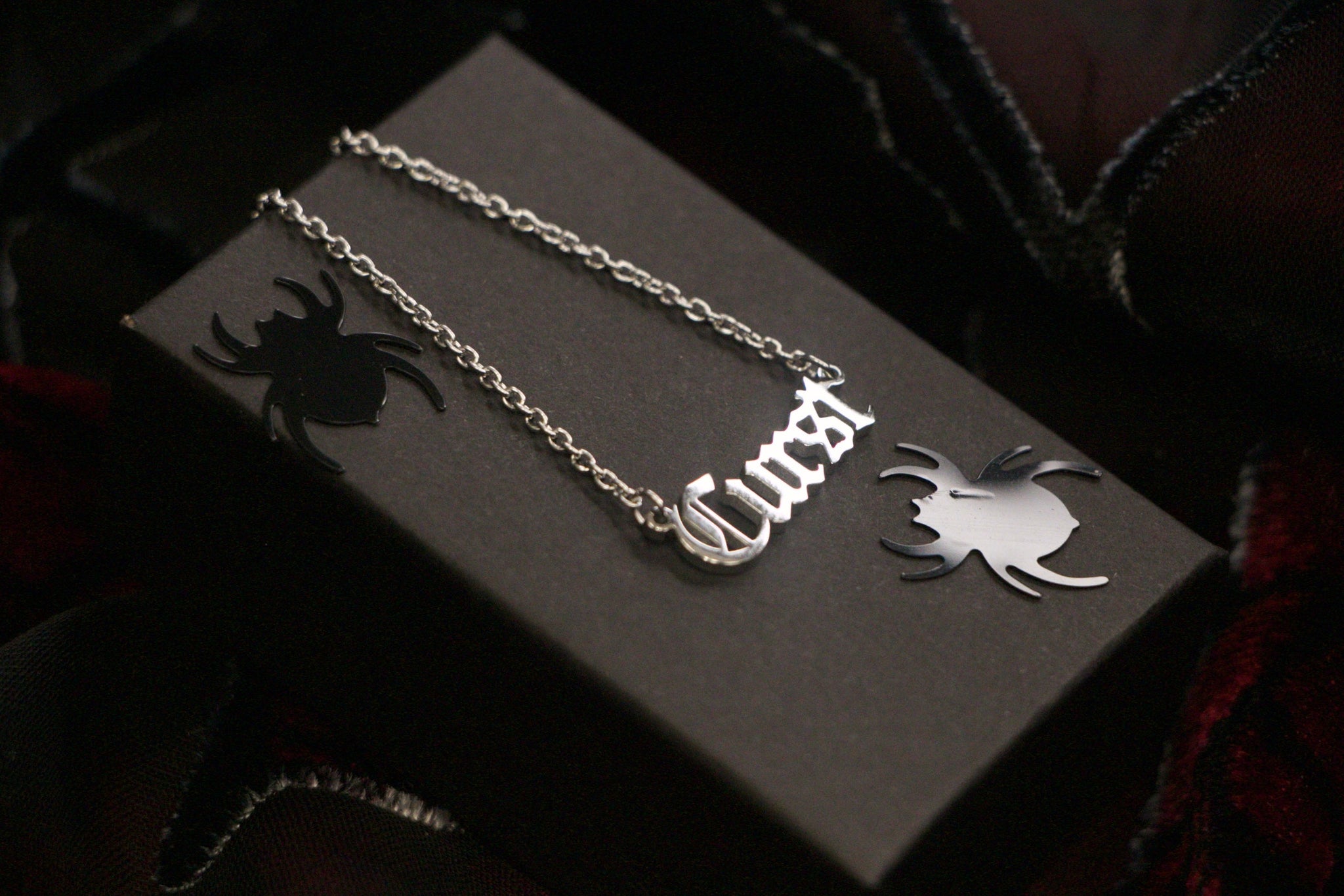 Embrace the eerie elegance of the night with our hauntingly beautiful Stainless Steel Curst Necklace. Crafted from the shadows of midnight and forged with the echoes of forgotten whispers, this necklace is more than just jewelry—it's a portal to the spectral realm.
