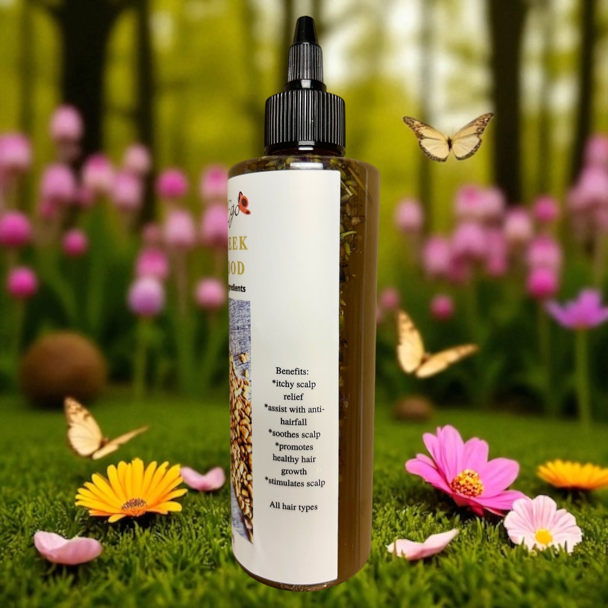 Fenugreek Hair Food is for all hair types. This is an all natural ayurvedic product without thickeners. Formulated with herbal ingredients such as rosemary and saw palmetto. Liquid based, instead of oil, so no oily scalp.