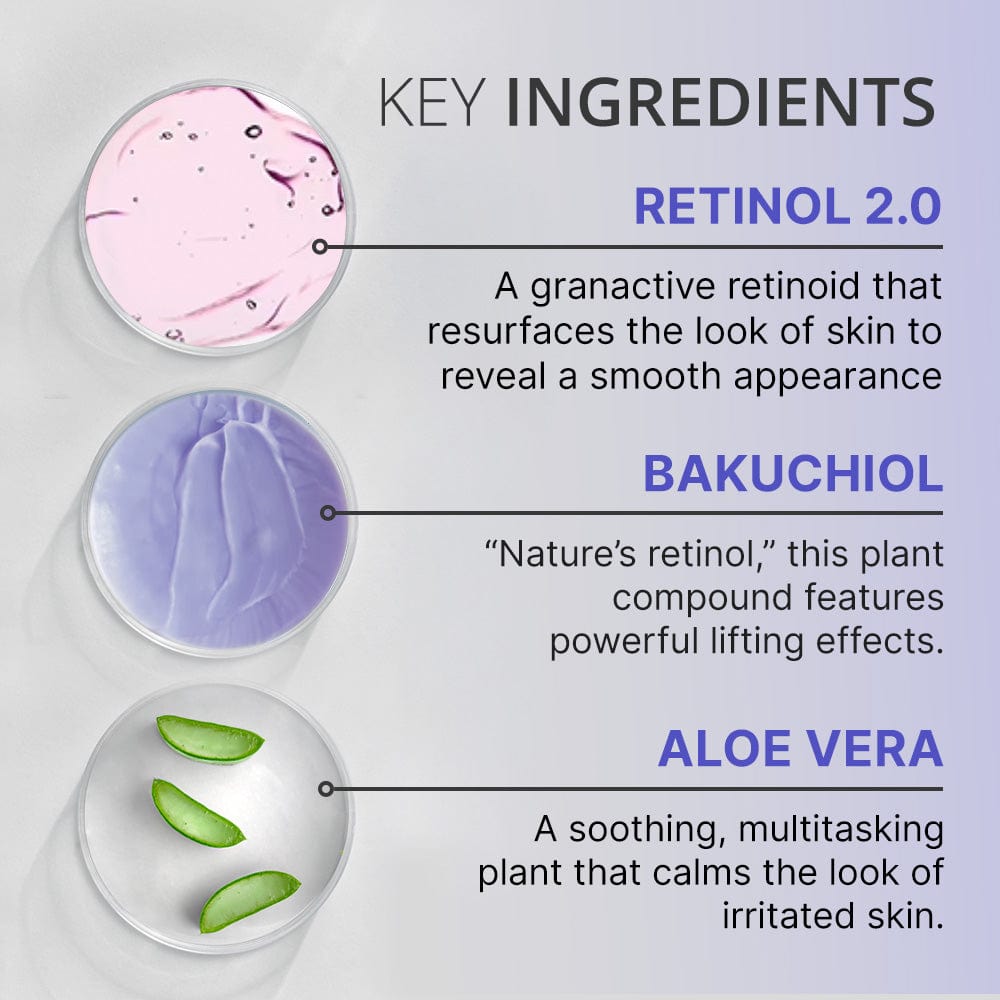 • FIRM & LIFT: Powerful skin plumping properties contribute to smooth appearance of skin and restore a youthful-looking glow, while key ingredients pure Retinol and Bakuchiol help to visibly tighten the look of sagging skin, fine lines and wrinkles
