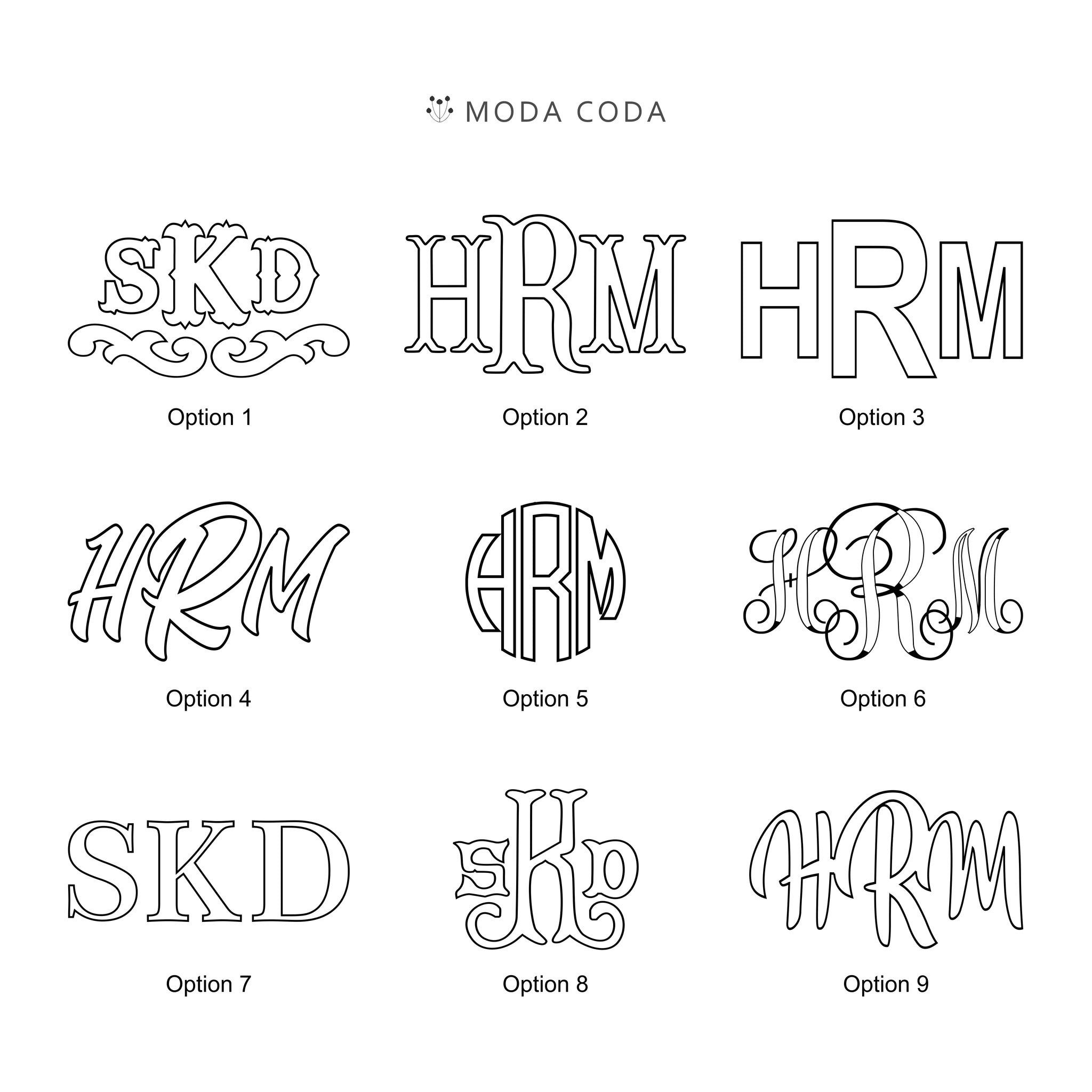 • Please select the size and font style from the drop down menu