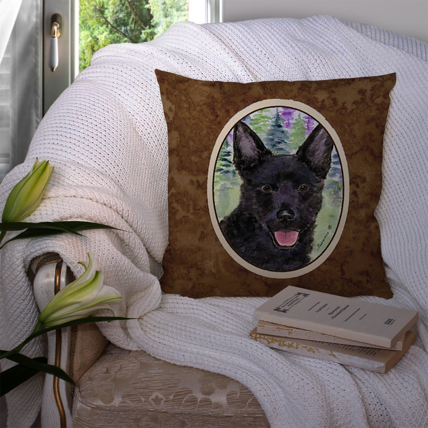 Decorate your space with our Australian Kelpie artwork on a Pillow. Add a touch of vibrancy and comfort to your outdoor seating with Caroline's Treasures Fabric Decorative Pillow. Measuring approximately 14 inches by 14 inches, this outdoor pillow is crafted to elevate the appeal of your patio furniture, infusing it with vivid color and artistic flair. The pillow includes a 100% Polyester Fabric sham filled with a quality pillow form to provide superior comfort. Innovatively made from our brand new material, specifically woven for its water resistance, this pillow is designed for durability. The soft canvas fabric offers versatility in use, fit for your indoor couch or your outdoor patio, porch, or veranda. The fabric is dyed with colorfast dyes built for resilience against weather conditions, ensuring the pillow retains its beauty over time. Constructed by sewing three fabric pieces to create a sham, the polyester insert is then nestled inside to form the pillow, resulting in an overstuffed pillow that maintains its shape. Both the sham and the pillow insert are proudly made in the United States. As the pillows are handcrafted, there may be minor variations in size, further enhancing their unique charm. Experience comfort in style with Caroline's Treasures Fabric Decorative Pillow.