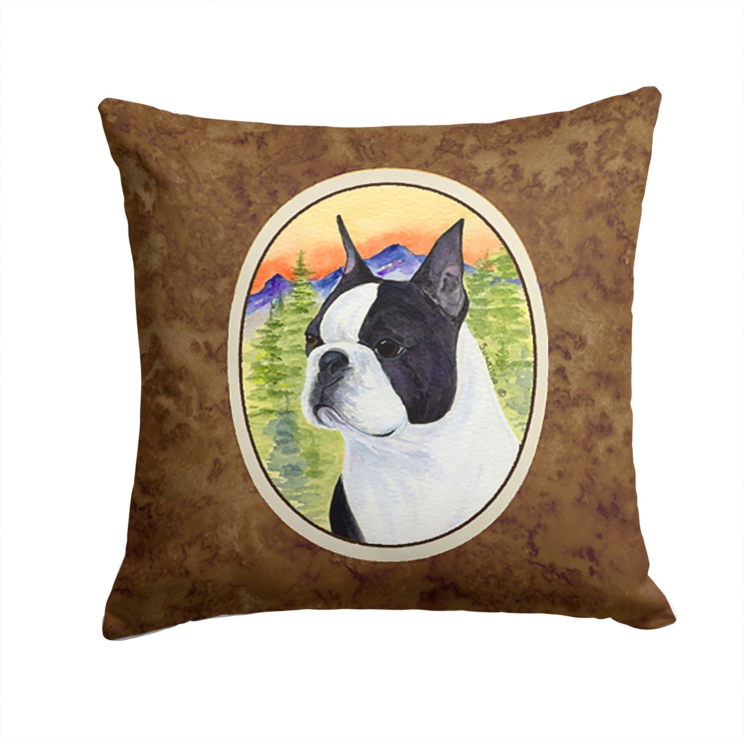 Decorate your space with our Boston Terrier artwork on a Pillow. Add a touch of vibrancy and comfort to your outdoor seating with Caroline's Treasures Fabric Decorative Pillow. Measuring approximately 14 inches by 14 inches, this outdoor pillow is crafted to elevate the appeal of your patio furniture, infusing it with vivid color and artistic flair. The pillow includes a 100% Polyester Fabric sham filled with a quality pillow form to provide superior comfort. Innovatively made from our brand new material, specifically woven for its water resistance, this pillow is designed for durability. The soft canvas fabric offers versatility in use, fit for your indoor couch or your outdoor patio, porch, or veranda. The fabric is dyed with colorfast dyes built for resilience against weather conditions, ensuring the pillow retains its beauty over time. Constructed by sewing three fabric pieces to create a sham, the polyester insert is then nestled inside to form the pillow, resulting in an overstuffed pillow that maintains its shape. Both the sham and the pillow insert are proudly made in the United States. As the pillows are handcrafted, there may be minor variations in size, further enhancing their unique charm. Experience comfort in style with Caroline's Treasures Fabric Decorative Pillow.