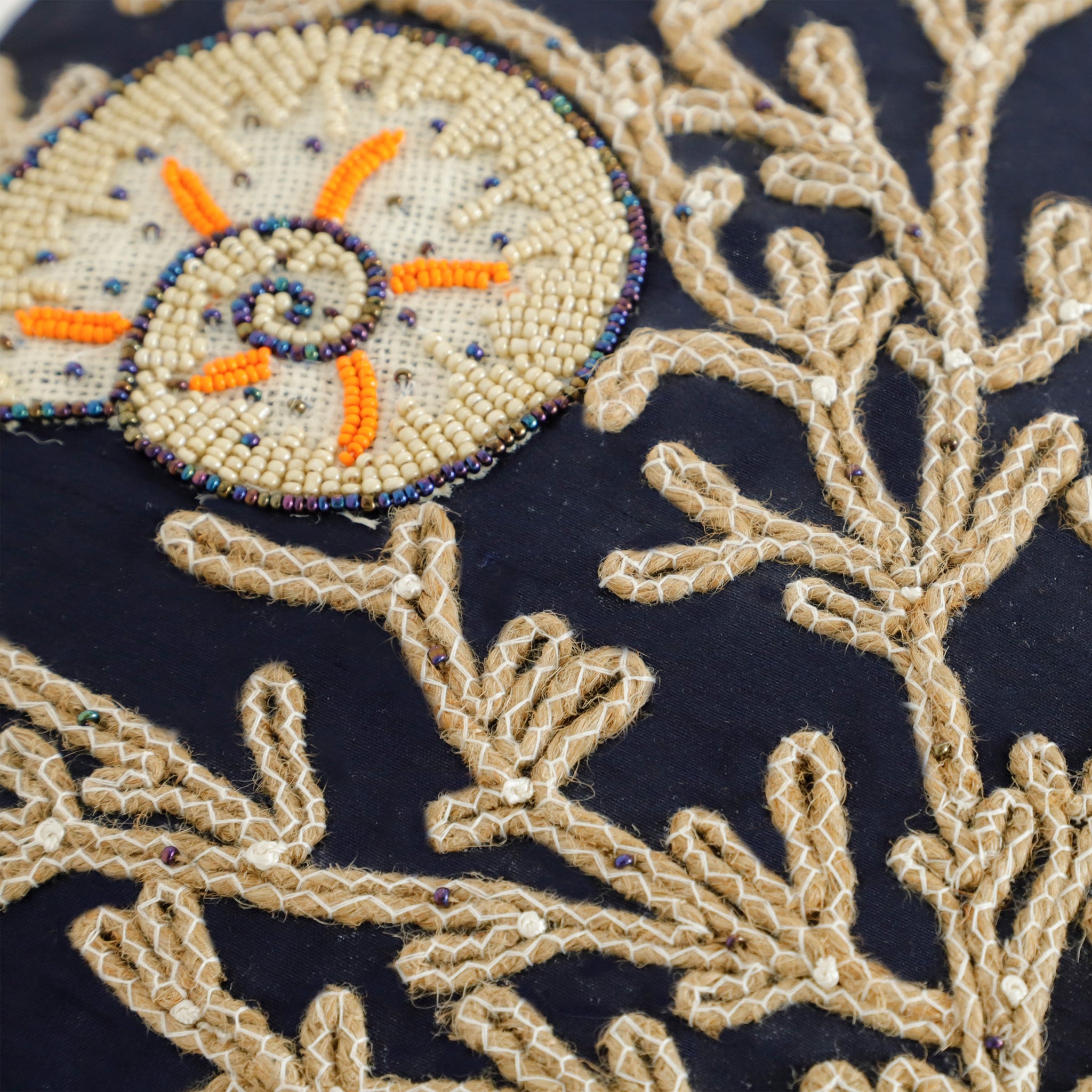 This detailed oceanic theme pillow cover is a piece of artwork for your sofa. It is crafted on faux silk that gives a subtle hint of the glittering waves. The sea life in neutral tones is elegantly detailed with specks of orange beads and sequin.
