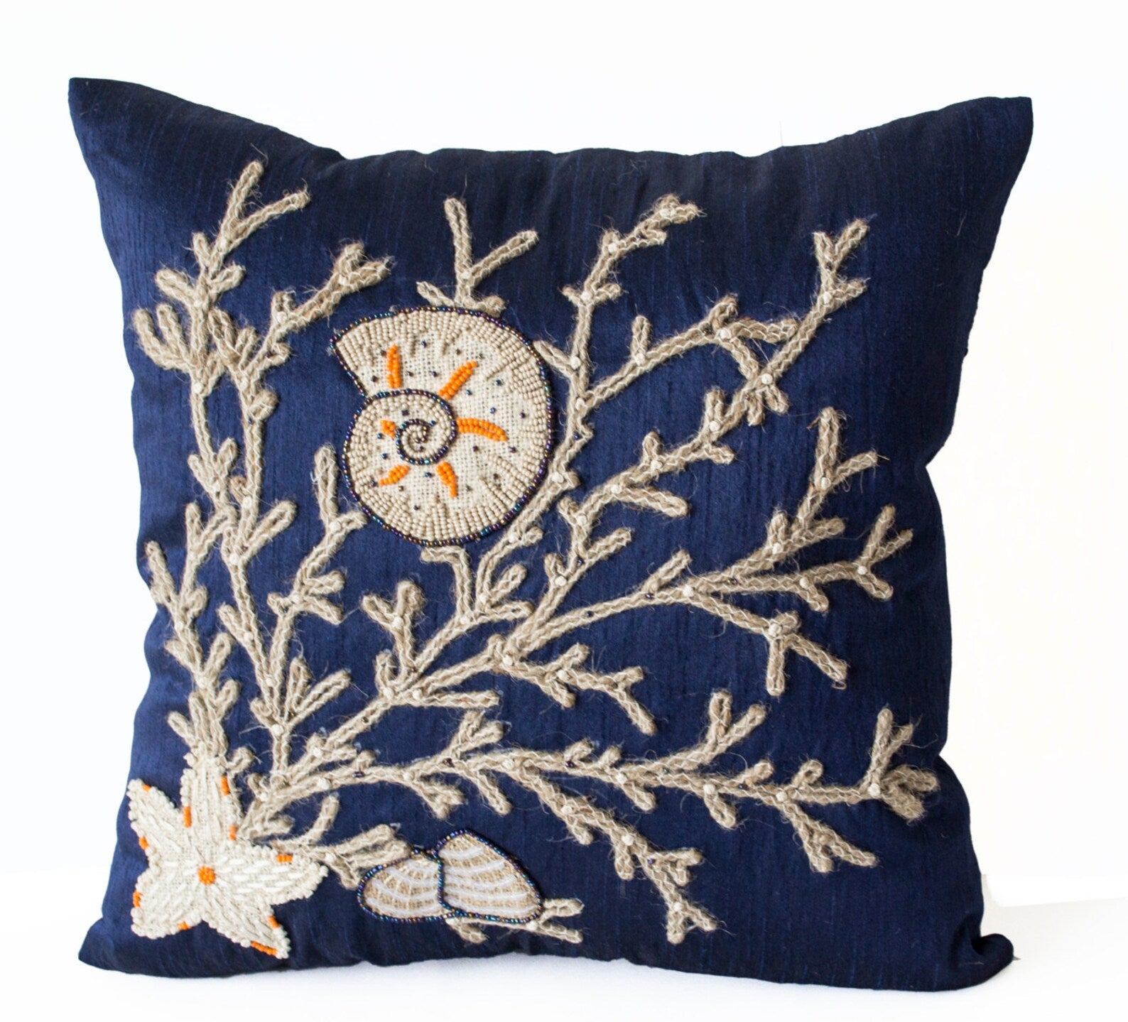Coral Pillow Cover, Silk Nautical Oceanic Sea Pillow Case