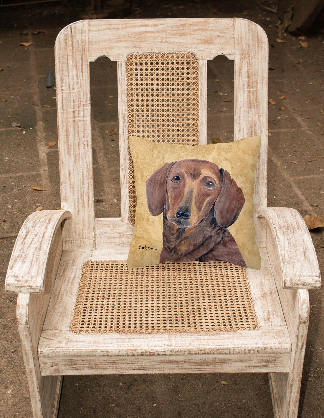Decorate your space with our Dachshund artwork on a Pillow. Add a touch of vibrancy and comfort to your outdoor seating with Caroline's Treasures Fabric Decorative Pillow. Measuring approximately 14 inches by 14 inches, this outdoor pillow is crafted to elevate the appeal of your patio furniture, infusing it with vivid color and artistic flair. The pillow includes a 100% Polyester Fabric sham filled with a quality pillow form to provide superior comfort. Innovatively made from our brand new material, specifically woven for its water resistance, this pillow is designed for durability. The soft canvas fabric offers versatility in use, fit for your indoor couch or your outdoor patio, porch, or veranda. The fabric is dyed with colorfast dyes built for resilience against weather conditions, ensuring the pillow retains its beauty over time. Constructed by sewing three fabric pieces to create a sham, the polyester insert is then nestled inside to form the pillow, resulting in an overstuffed pillow that maintains its shape. Both the sham and the pillow insert are proudly made in the United States. As the pillows are handcrafted, there may be minor variations in size, further enhancing their unique charm. Experience comfort in style with Caroline's Treasures Fabric Decorative Pillow.