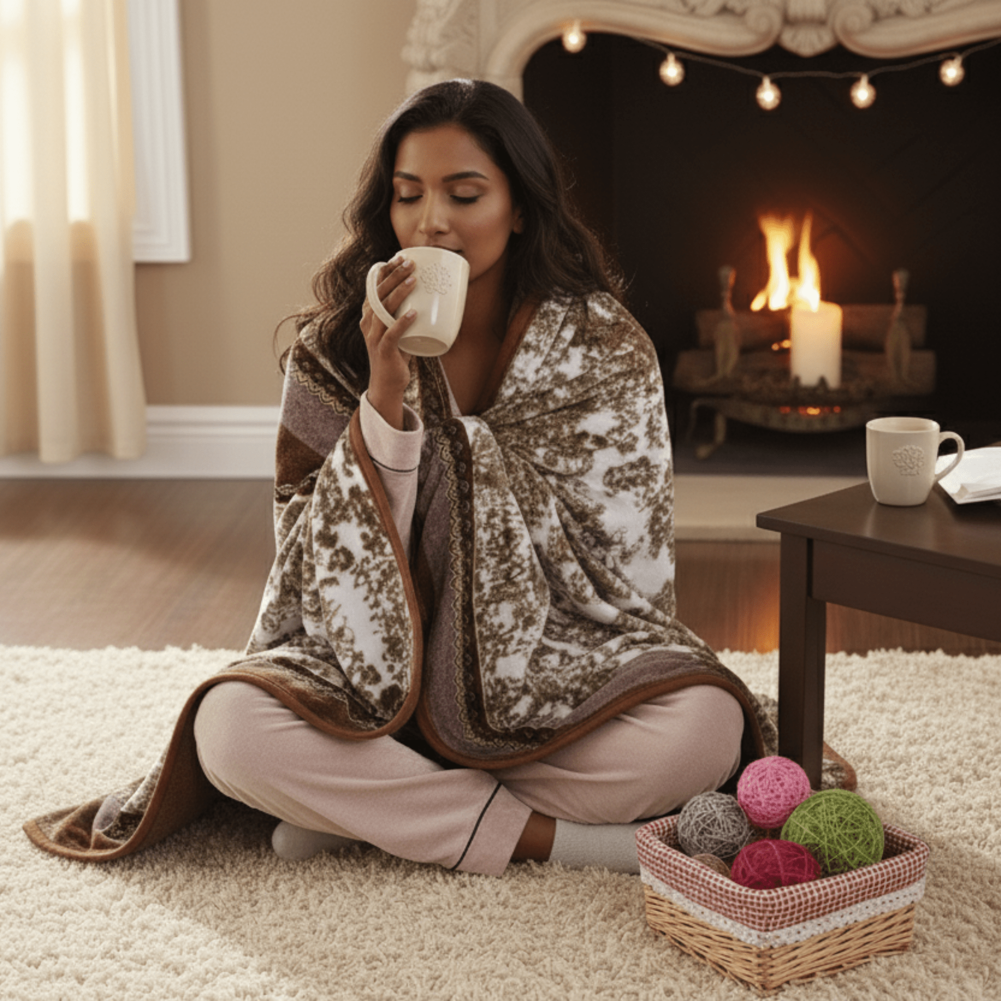 • Features a lovely bold chocolate brown border all around the blanket with a intricate horizontal floral design giving this blanket a unique look!