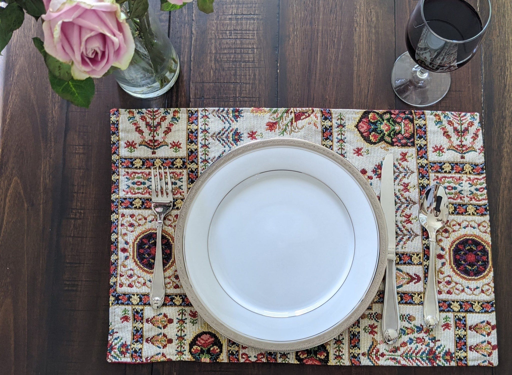 - Set of 4 Piece Place-mats - Size: 13” W x 19” L (33cm x 48cm)