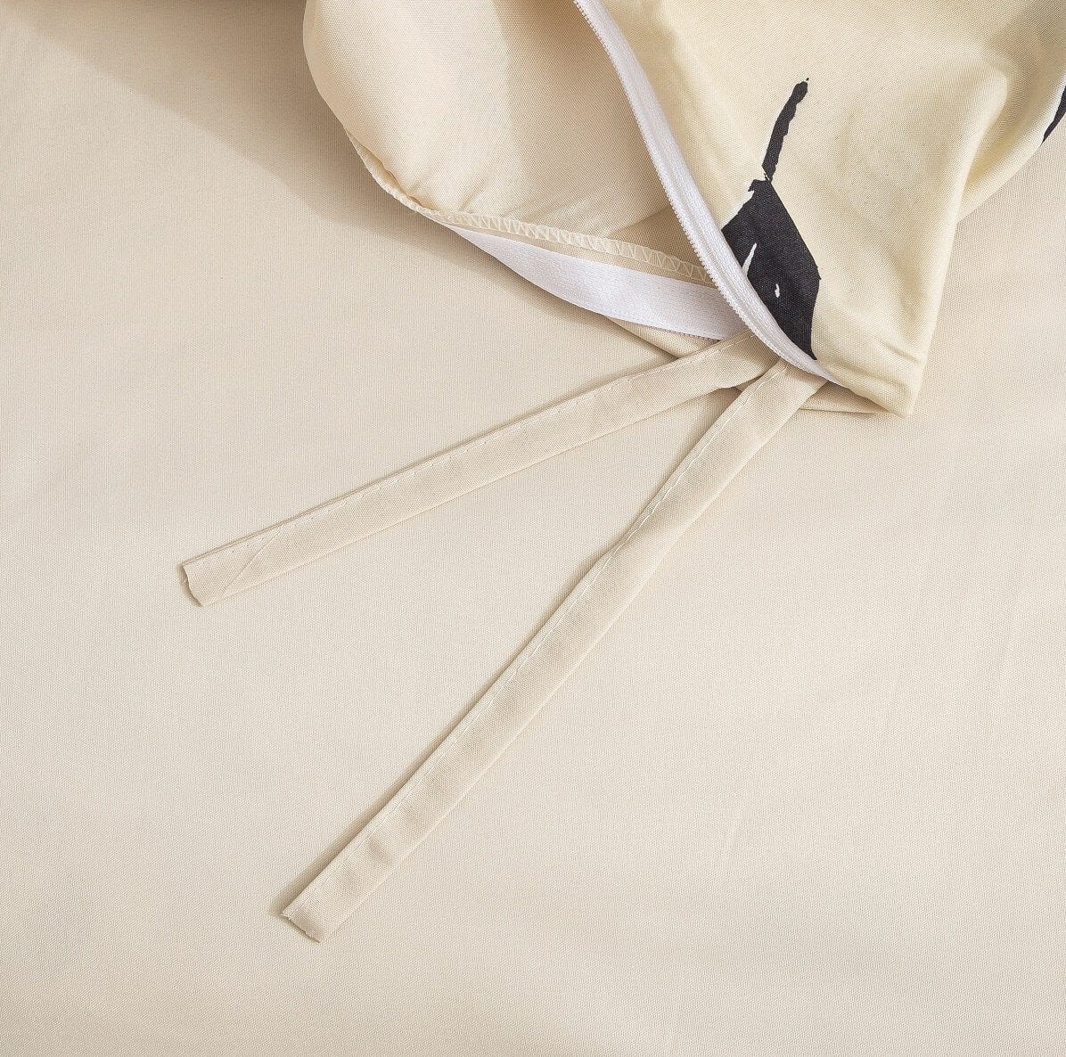 The Botanical Yellow Fleur Duvet Cover + Sheets Set is accented with dainty yellow floral patterns on a solid ivory tan background showing off a bright pop of color to your home décor.