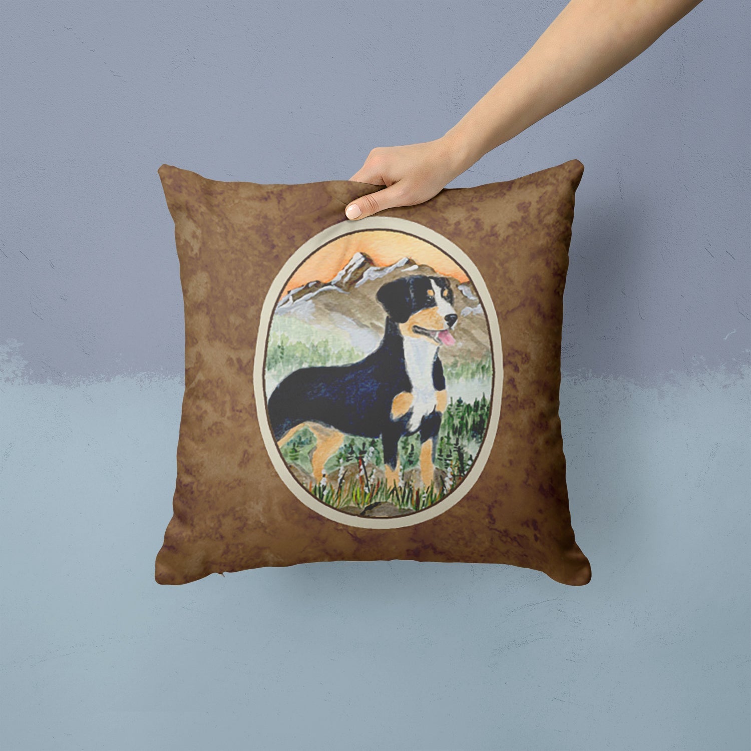 Decorate your space with our Entlebucher artwork on a Pillow. Add a touch of vibrancy and comfort to your outdoor seating with Caroline's Treasures Fabric Decorative Pillow. Measuring approximately 14 inches by 14 inches, this outdoor pillow is crafted to elevate the appeal of your patio furniture, infusing it with vivid color and artistic flair. The pillow includes a 100% Polyester Fabric sham filled with a quality pillow form to provide superior comfort. Innovatively made from our brand new material, specifically woven for its water resistance, this pillow is designed for durability. The soft canvas fabric offers versatility in use, fit for your indoor couch or your outdoor patio, porch, or veranda. The fabric is dyed with colorfast dyes built for resilience against weather conditions, ensuring the pillow retains its beauty over time. Constructed by sewing three fabric pieces to create a sham, the polyester insert is then nestled inside to form the pillow, resulting in an overstuffed pillow that maintains its shape. Both the sham and the pillow insert are proudly made in the United States. As the pillows are handcrafted, there may be minor variations in size, further enhancing their unique charm. Experience comfort in style with Caroline's Treasures Fabric Decorative Pillow.