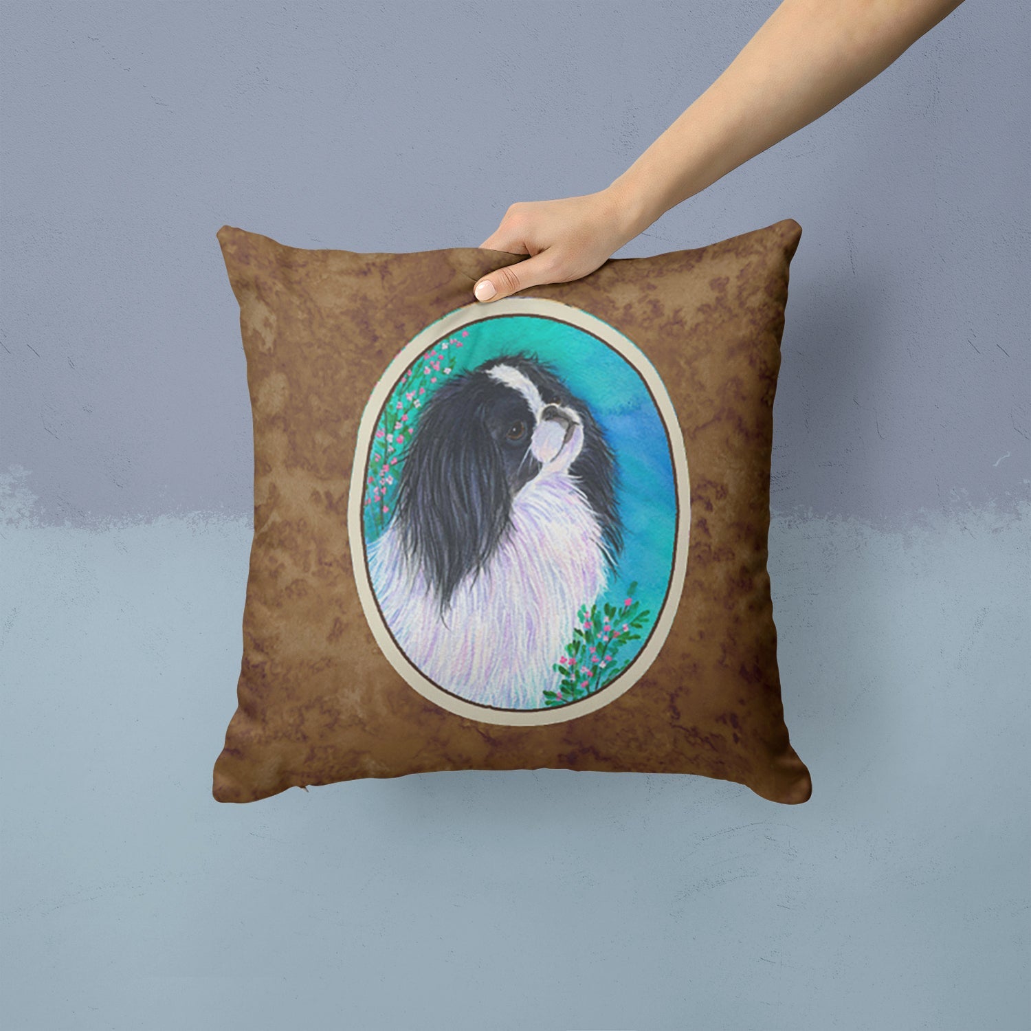 Decorate your space with our Japanese Chin artwork on a Pillow. Add a touch of vibrancy and comfort to your outdoor seating with Caroline's Treasures Fabric Decorative Pillow. Measuring approximately 14 inches by 14 inches, this outdoor pillow is crafted to elevate the appeal of your patio furniture, infusing it with vivid color and artistic flair. The pillow includes a 100% Polyester Fabric sham filled with a quality pillow form to provide superior comfort. Innovatively made from our brand new material, specifically woven for its water resistance, this pillow is designed for durability. The soft canvas fabric offers versatility in use, fit for your indoor couch or your outdoor patio, porch, or veranda. The fabric is dyed with colorfast dyes built for resilience against weather conditions, ensuring the pillow retains its beauty over time. Constructed by sewing three fabric pieces to create a sham, the polyester insert is then nestled inside to form the pillow, resulting in an overstuffed pillow that maintains its shape. Both the sham and the pillow insert are proudly made in the United States. As the pillows are handcrafted, there may be minor variations in size, further enhancing their unique charm. Experience comfort in style with Caroline's Treasures Fabric Decorative Pillow.