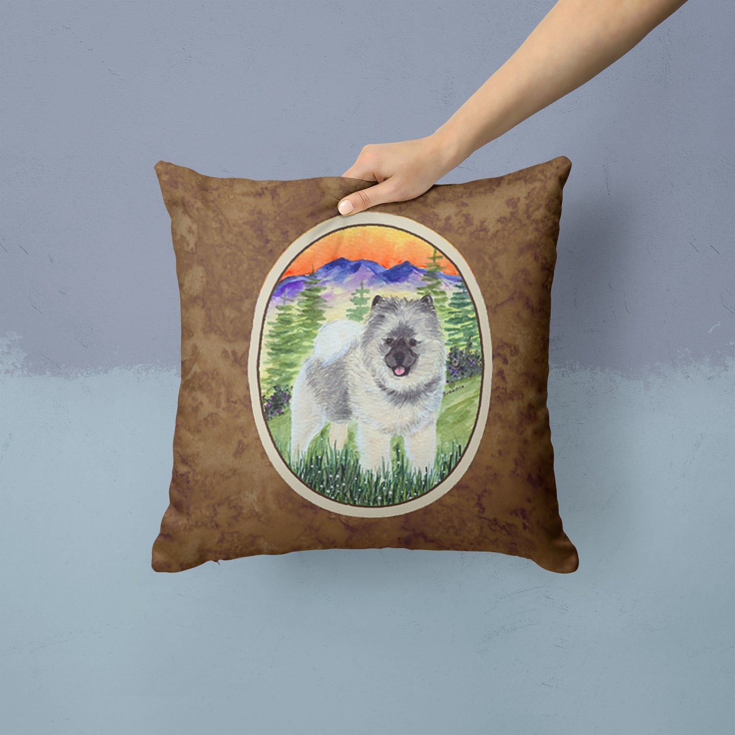 Decorate your space with our Keeshond artwork on a Pillow. Add a touch of vibrancy and comfort to your outdoor seating with Caroline's Treasures Fabric Decorative Pillow. Measuring approximately 14 inches by 14 inches, this outdoor pillow is crafted to elevate the appeal of your patio furniture, infusing it with vivid color and artistic flair. The pillow includes a 100% Polyester Fabric sham filled with a quality pillow form to provide superior comfort. Innovatively made from our brand new material, specifically woven for its water resistance, this pillow is designed for durability. The soft canvas fabric offers versatility in use, fit for your indoor couch or your outdoor patio, porch, or veranda. The fabric is dyed with colorfast dyes built for resilience against weather conditions, ensuring the pillow retains its beauty over time. Constructed by sewing three fabric pieces to create a sham, the polyester insert is then nestled inside to form the pillow, resulting in an overstuffed pillow that maintains its shape. Both the sham and the pillow insert are proudly made in the United States. As the pillows are handcrafted, there may be minor variations in size, further enhancing their unique charm. Experience comfort in style with Caroline's Treasures Fabric Decorative Pillow.