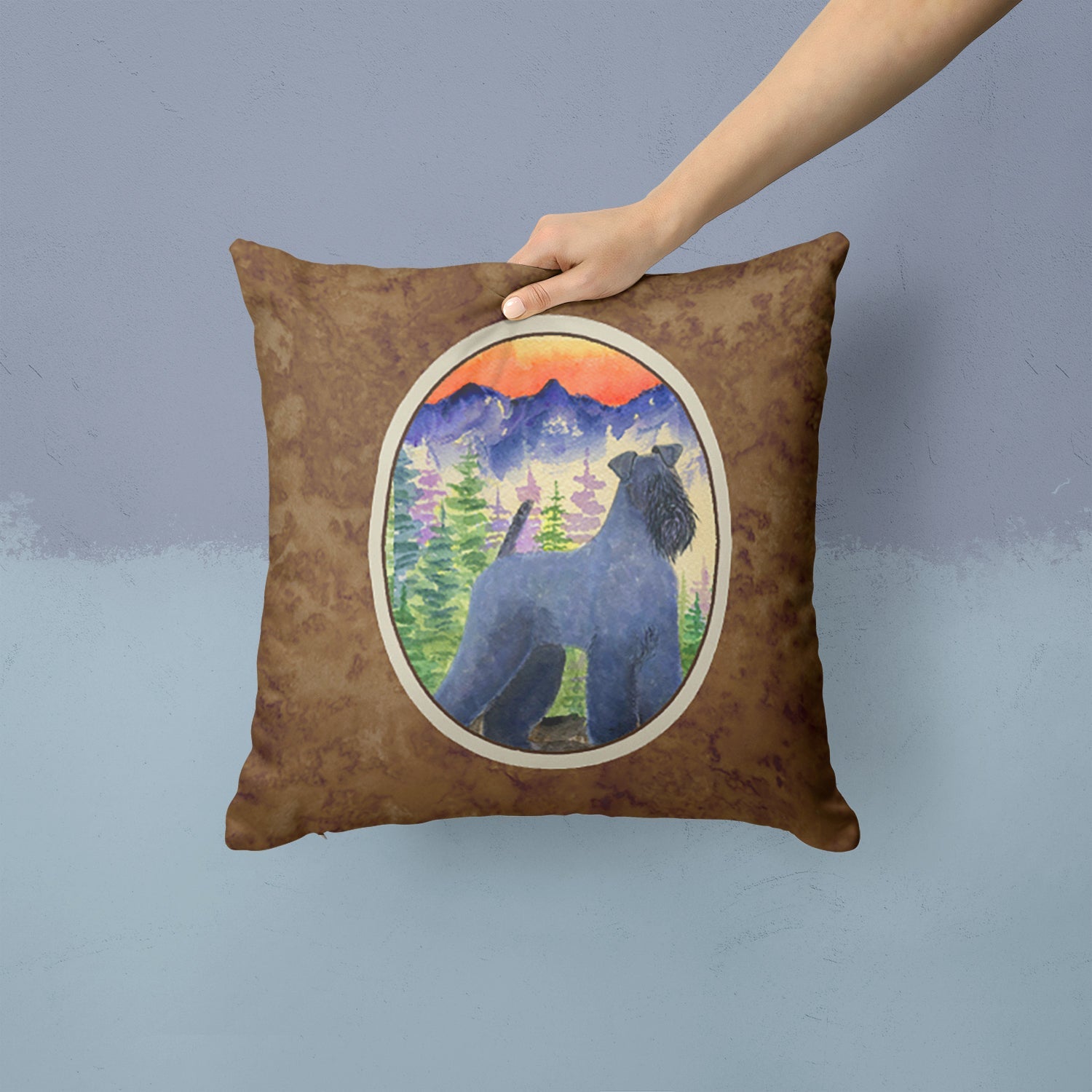 Decorate your space with our Kerry Blue Terrier artwork on a Pillow. Add a touch of vibrancy and comfort to your outdoor seating with Caroline's Treasures Fabric Decorative Pillow. Measuring approximately 14 inches by 14 inches, this outdoor pillow is crafted to elevate the appeal of your patio furniture, infusing it with vivid color and artistic flair. The pillow includes a 100% Polyester Fabric sham filled with a quality pillow form to provide superior comfort. Innovatively made from our brand new material, specifically woven for its water resistance, this pillow is designed for durability. The soft canvas fabric offers versatility in use, fit for your indoor couch or your outdoor patio, porch, or veranda. The fabric is dyed with colorfast dyes built for resilience against weather conditions, ensuring the pillow retains its beauty over time. Constructed by sewing three fabric pieces to create a sham, the polyester insert is then nestled inside to form the pillow, resulting in an overstuffed pillow that maintains its shape. Both the sham and the pillow insert are proudly made in the United States. As the pillows are handcrafted, there may be minor variations in size, further enhancing their unique charm. Experience comfort in style with Caroline's Treasures Fabric Decorative Pillow.