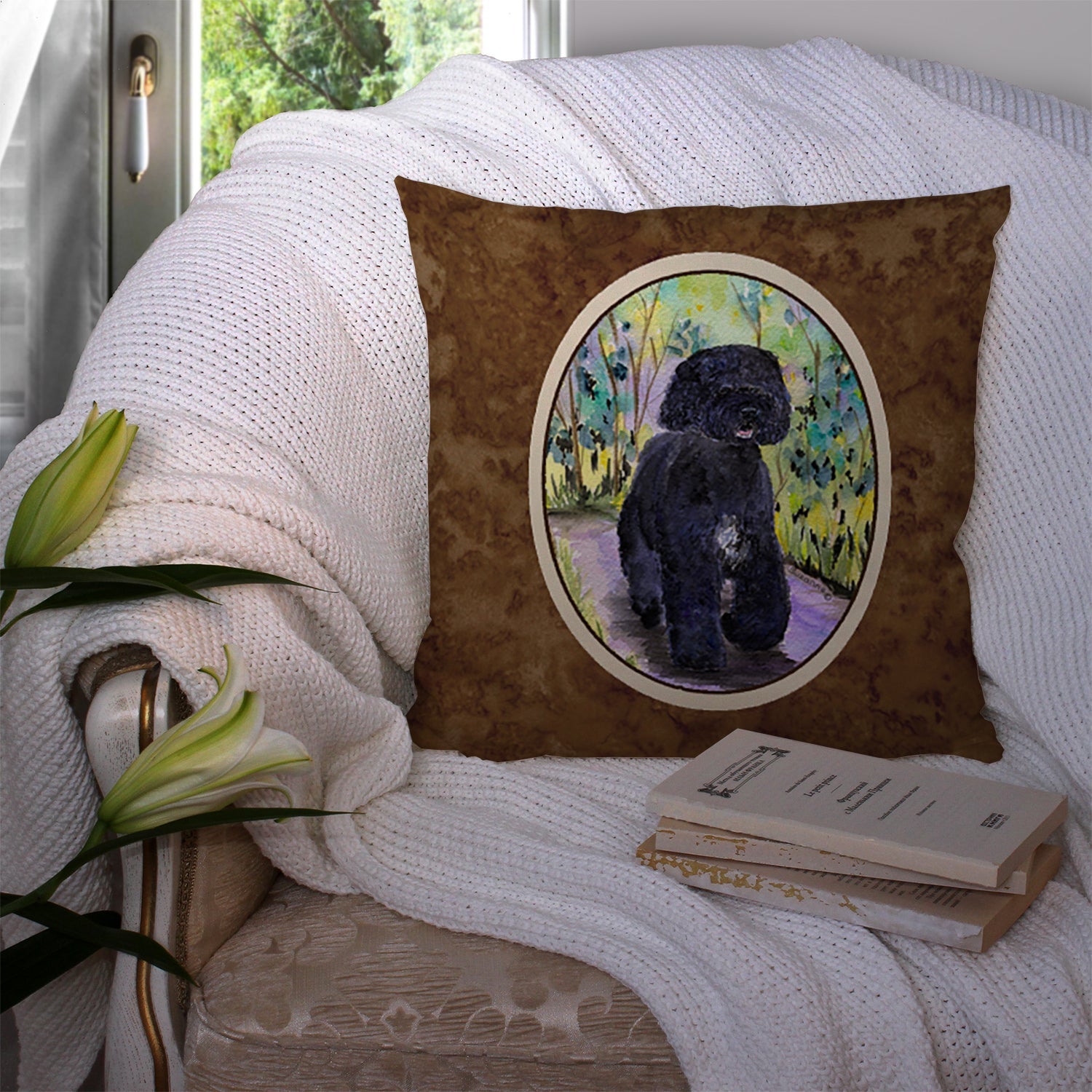 Decorate your space with our Portuguese Water Dog artwork on a Pillow. Add a touch of vibrancy and comfort to your outdoor seating with Caroline's Treasures Fabric Decorative Pillow. Measuring approximately 14 inches by 14 inches, this outdoor pillow is crafted to elevate the appeal of your patio furniture, infusing it with vivid color and artistic flair. The pillow includes a 100% Polyester Fabric sham filled with a quality pillow form to provide superior comfort. Innovatively made from our brand new material, specifically woven for its water resistance, this pillow is designed for durability. The soft canvas fabric offers versatility in use, fit for your indoor couch or your outdoor patio, porch, or veranda. The fabric is dyed with colorfast dyes built for resilience against weather conditions, ensuring the pillow retains its beauty over time. Constructed by sewing three fabric pieces to create a sham, the polyester insert is then nestled inside to form the pillow, resulting in an overstuffed pillow that maintains its shape. Both the sham and the pillow insert are proudly made in the United States. As the pillows are handcrafted, there may be minor variations in size, further enhancing their unique charm. Experience comfort in style with Caroline's Treasures Fabric Decorative Pillow.