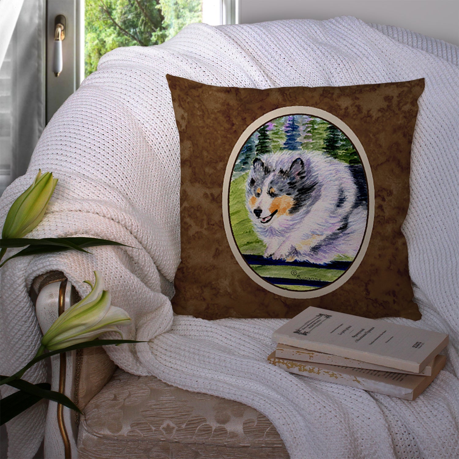 Decorate your space with our Sheltie/Shetland Sheepdog artwork on a Pillow. Add a touch of vibrancy and comfort to your outdoor seating with Caroline's Treasures Fabric Decorative Pillow. Measuring approximately 14 inches by 14 inches, this outdoor pillow is crafted to elevate the appeal of your patio furniture, infusing it with vivid color and artistic flair. The pillow includes a 100% Polyester Fabric sham filled with a quality pillow form to provide superior comfort. Innovatively made from our brand new material, specifically woven for its water resistance, this pillow is designed for durability. The soft canvas fabric offers versatility in use, fit for your indoor couch or your outdoor patio, porch, or veranda. The fabric is dyed with colorfast dyes built for resilience against weather conditions, ensuring the pillow retains its beauty over time. Constructed by sewing three fabric pieces to create a sham, the polyester insert is then nestled inside to form the pillow, resulting in an overstuffed pillow that maintains its shape. Both the sham and the pillow insert are proudly made in the United States. As the pillows are handcrafted, there may be minor variations in size, further enhancing their unique charm. Experience comfort in style with Caroline's Treasures Fabric Decorative Pillow.