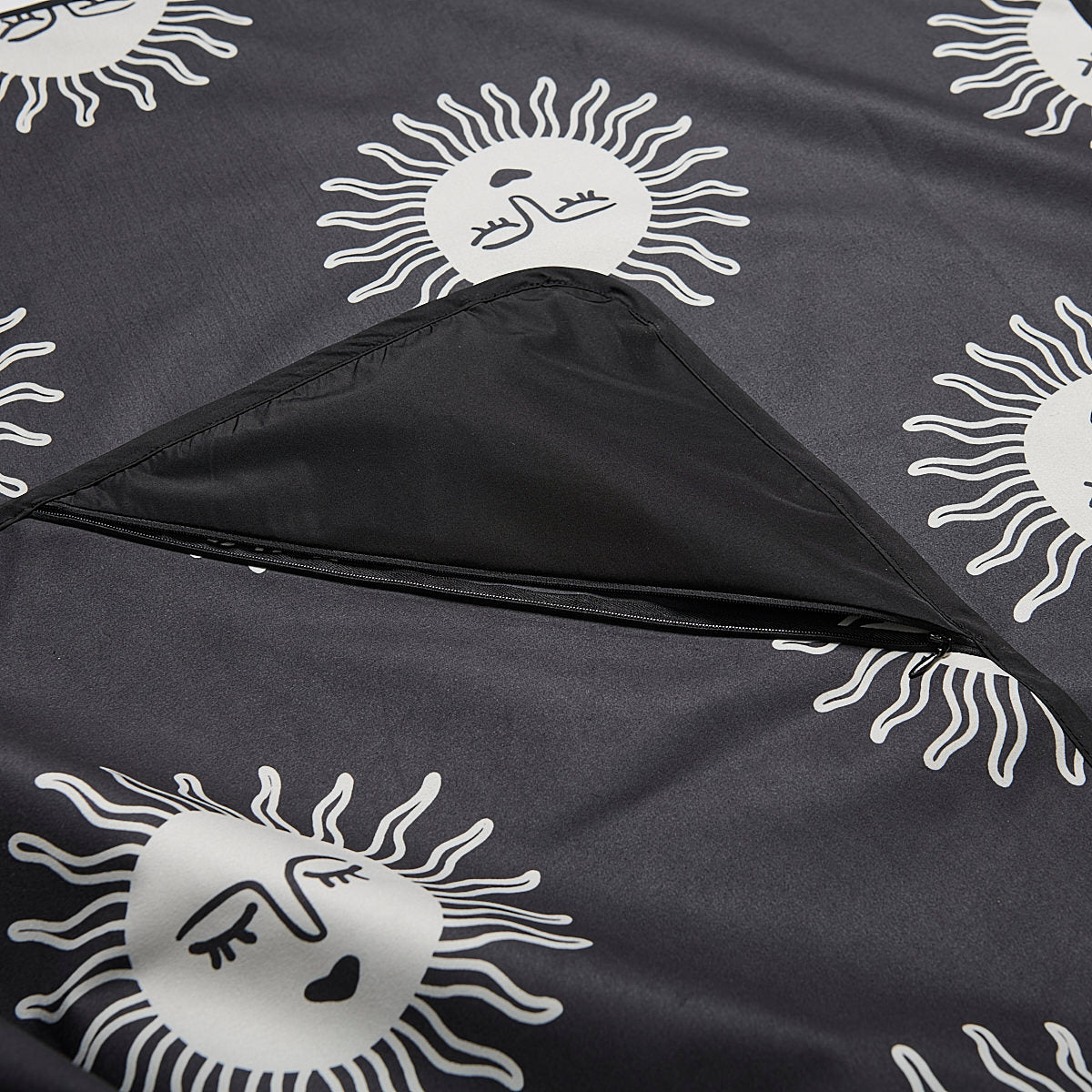 Functional and Durable - Lightweight yet robust, this blanket accommodates you and a friend comfortably. It’s sand-free, water repellent, and equipped with loops for tent stakes, corner pockets to weigh down the pocket with sand, and an attached drawcord loop to clip a carabiner. Additionally, it includes a corner cell phone pocket for convenient storage.
