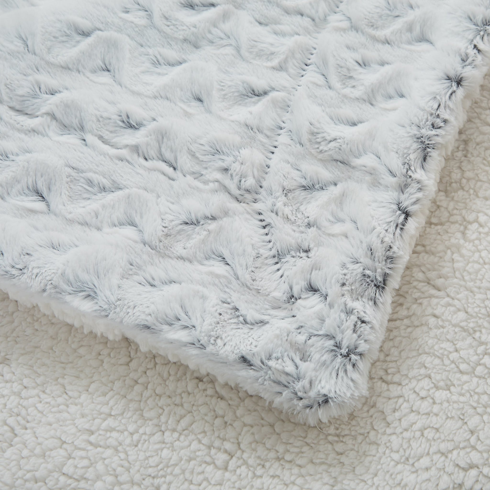 The front of this exquisite blanket is crafted from sumptuous faux fur, replicating the softness of a snowy owl's plumage. The reverse side features a cloud-like white Sherpa, inviting you to wrap yourself in its warmth and coziness, making it the perfect companion for even the coldest of days.