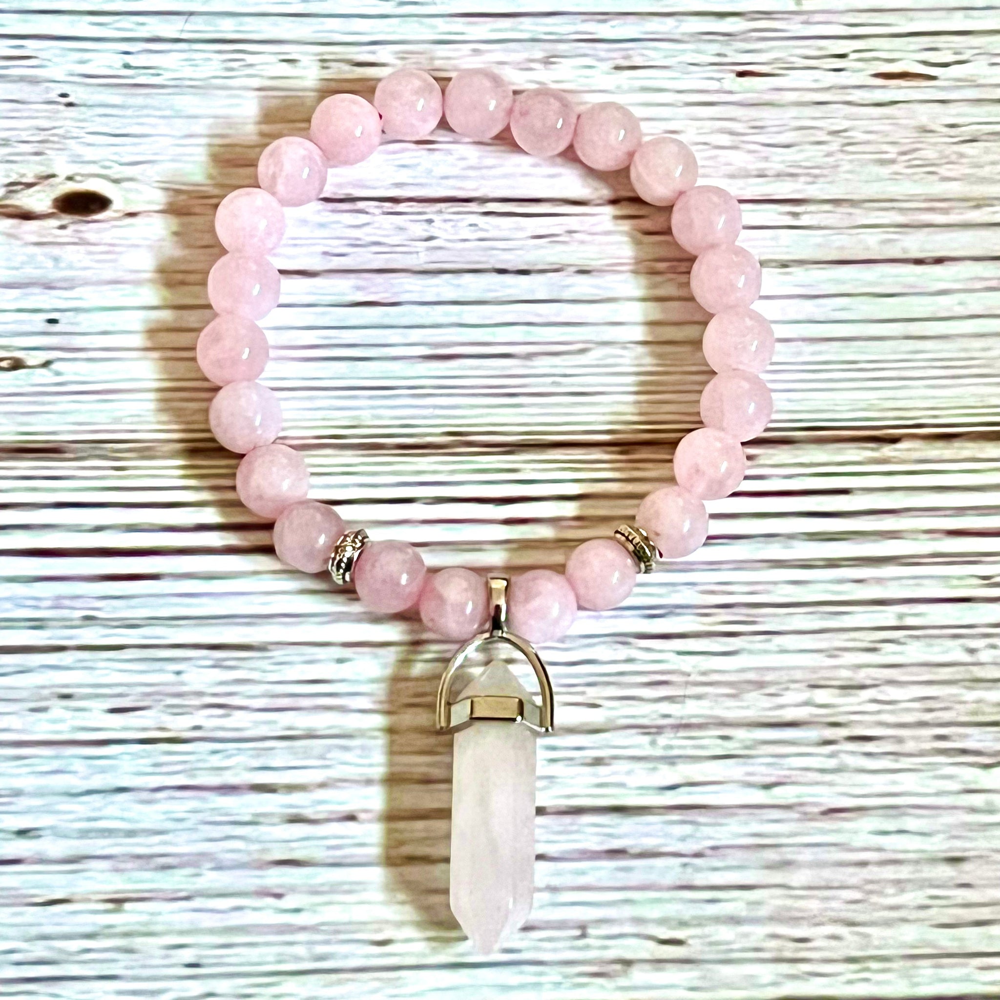The crystal chakra point charm helps focus the healing energy of Rose Quartz into your energetic body to receive its highest vibration. It is also a symbol of harmony and balance between male and female energy, the Yin and the Yang, and the manifestation of divine harmony in nature.