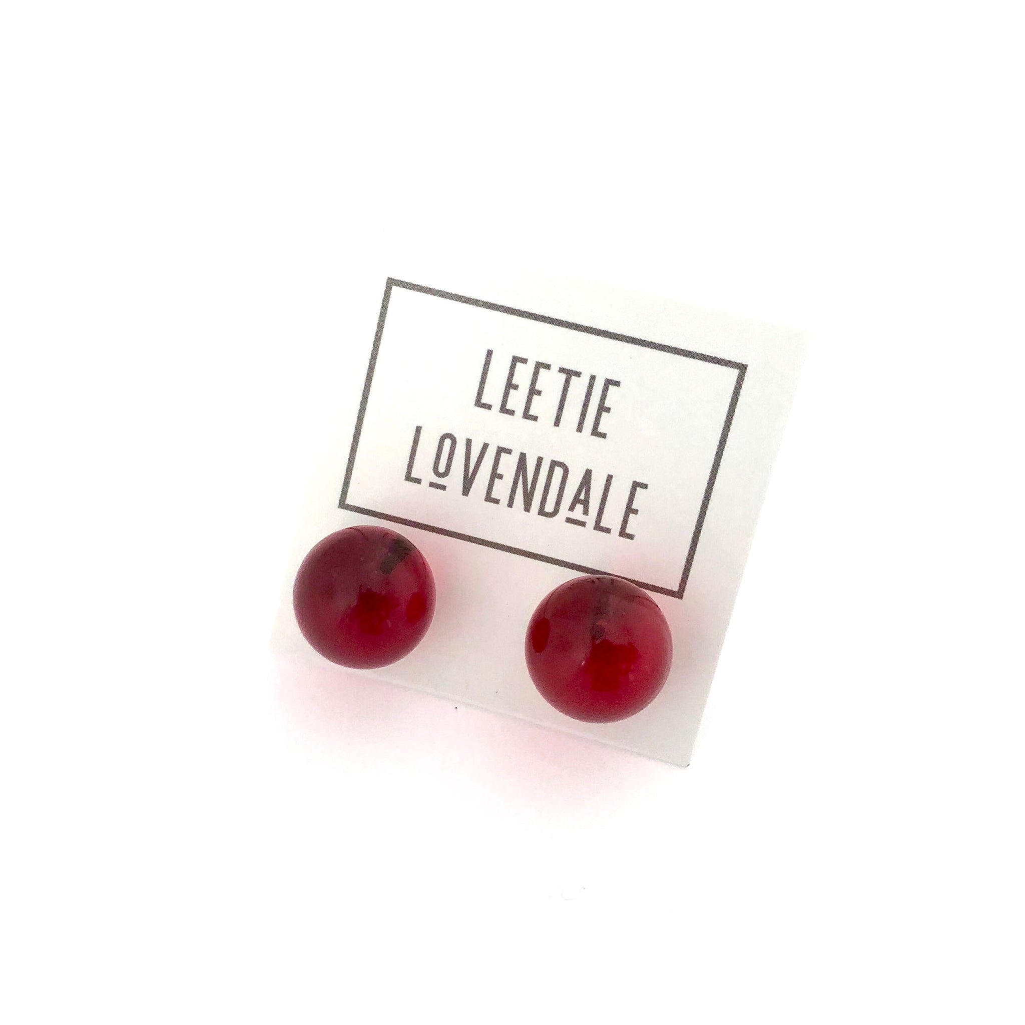 Ruby red Transparent Jumbo studs measuring approximately 16mm - a great classic size that will put that retro touch on your look. Last pic of model wearing them in a different color for size.