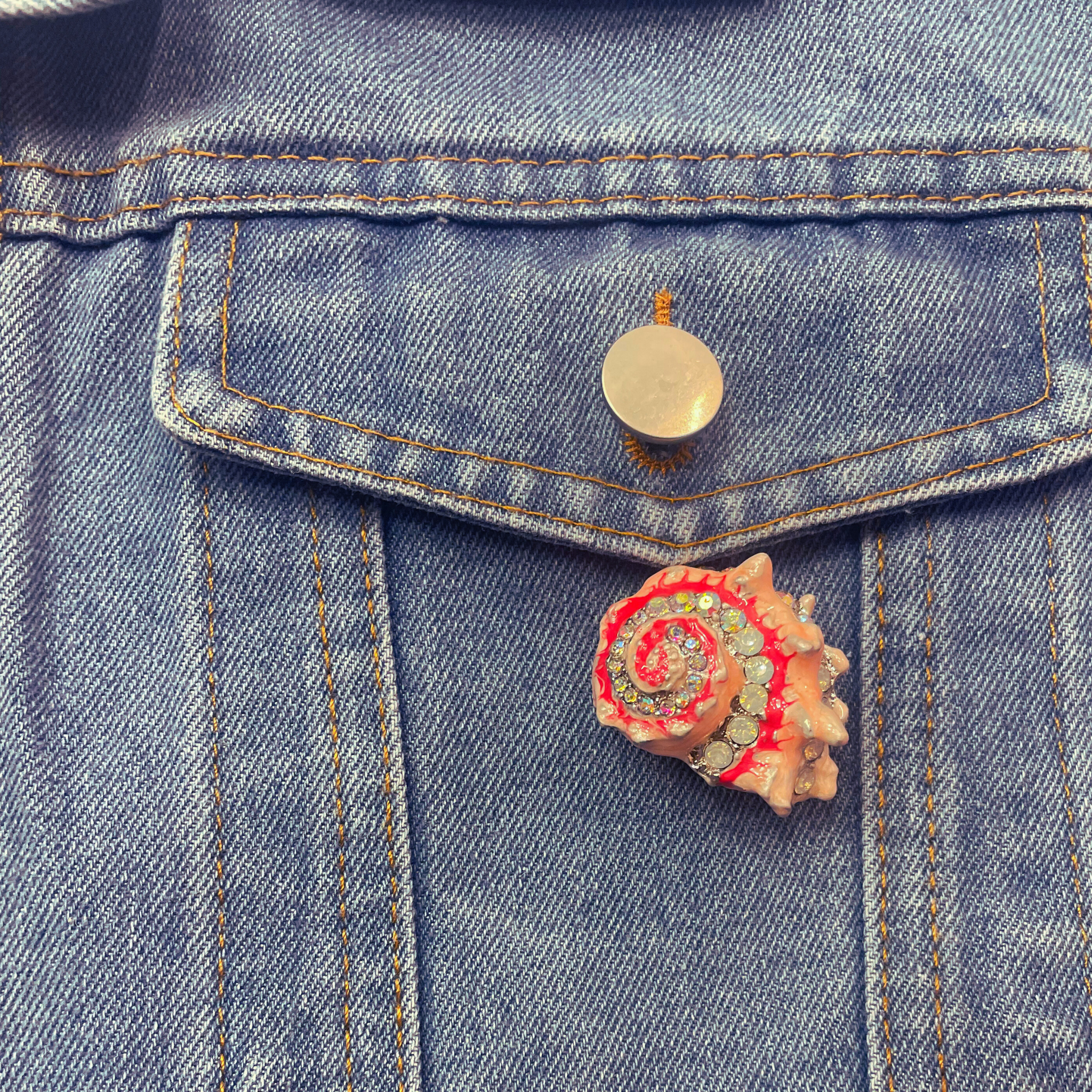 Pretty pink and red seashell pin has mermaid vibes.Â