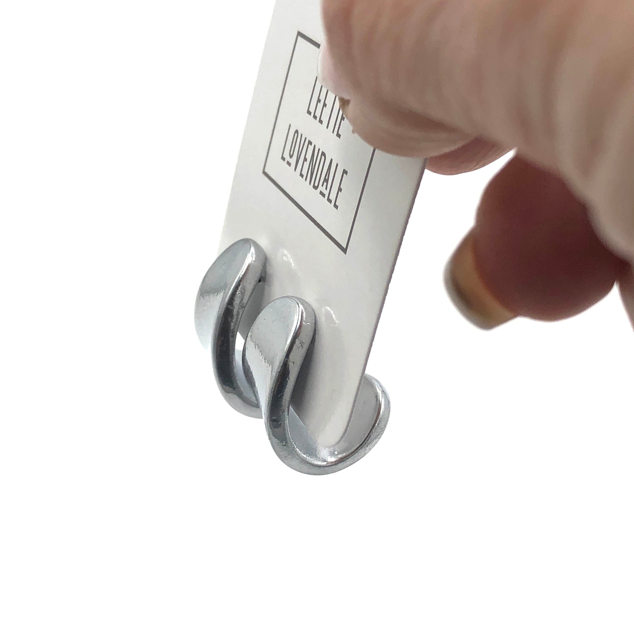 Shabby Metallic Silver Curled Petal Stud Earrings