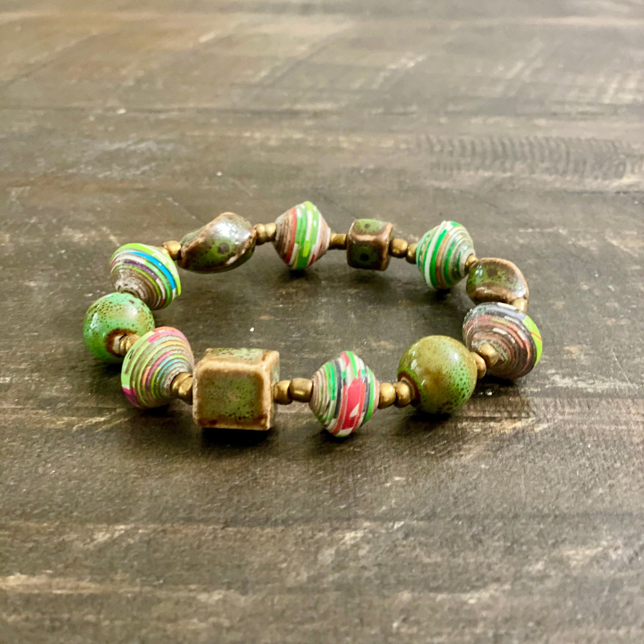 Raw and unprocessed clay is found in the central plateau region in Haiti. We process this clay in house, by hand and our bead makers hand-roll the beads to serve as the basis for most of our jewelry. This set is paired with hand-rolled paper beads made by our talented artisans. The Signature Necklace is also available in this set.