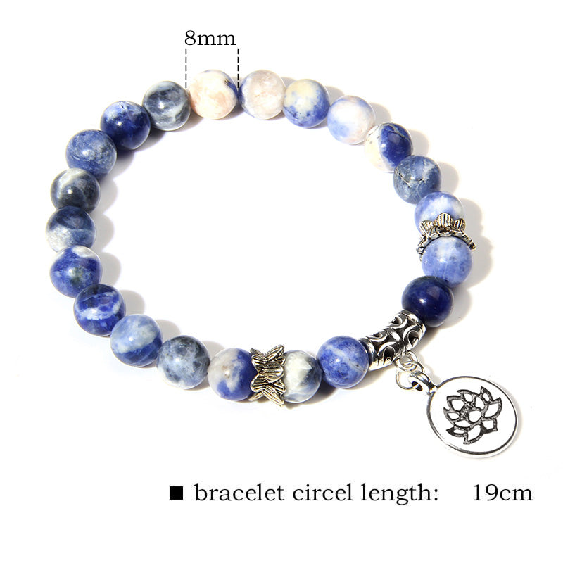 Embrace the serenity within and the beauty that blooms from personal growth. Elevate your style and energy with our Sodalite Crystal Bracelet with Lotus Charm.