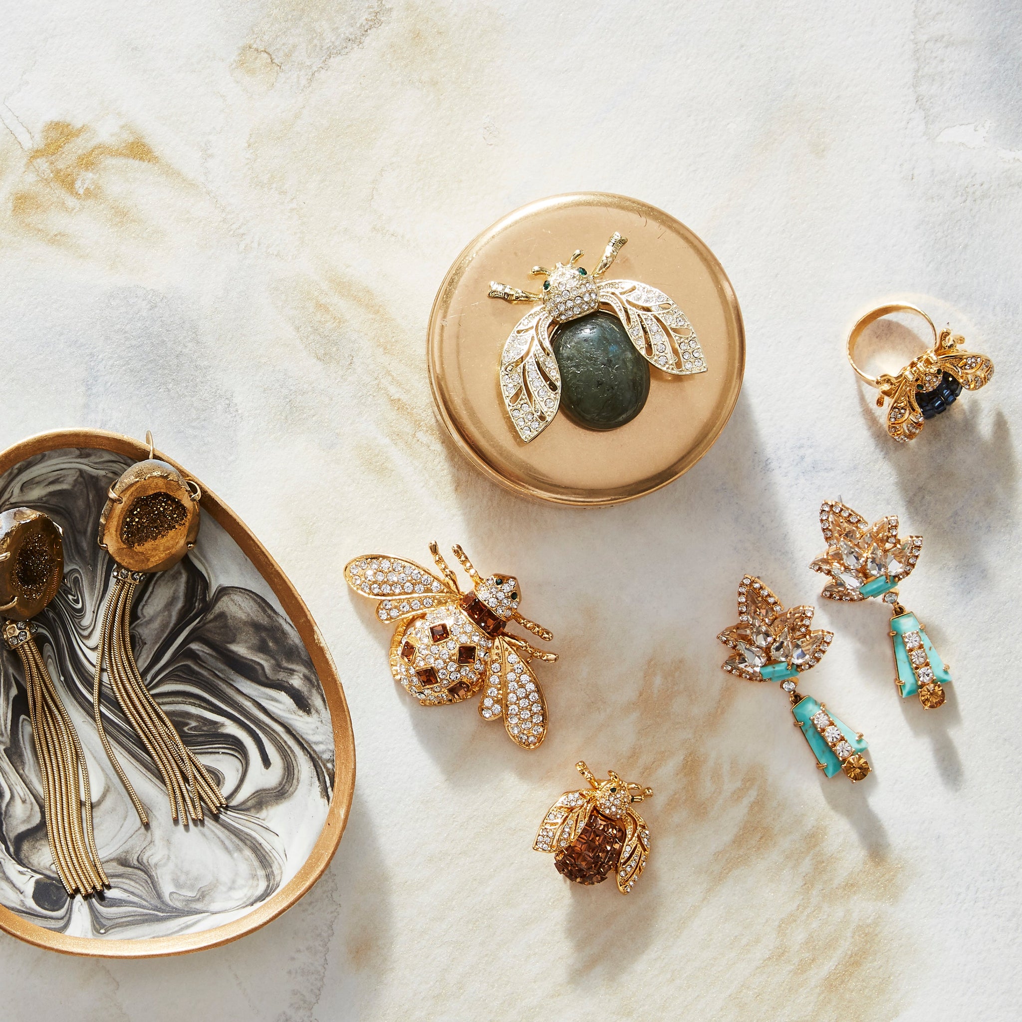 We love our sparkle bee wreath clips so much we had to make them proper jewelry brooches! A beautiful topaz critter for your scarf, jacket or coat lapel. Or mix a couple of our pins together for a bold statement "moment." A jeweled pin will never be a bad idea.
