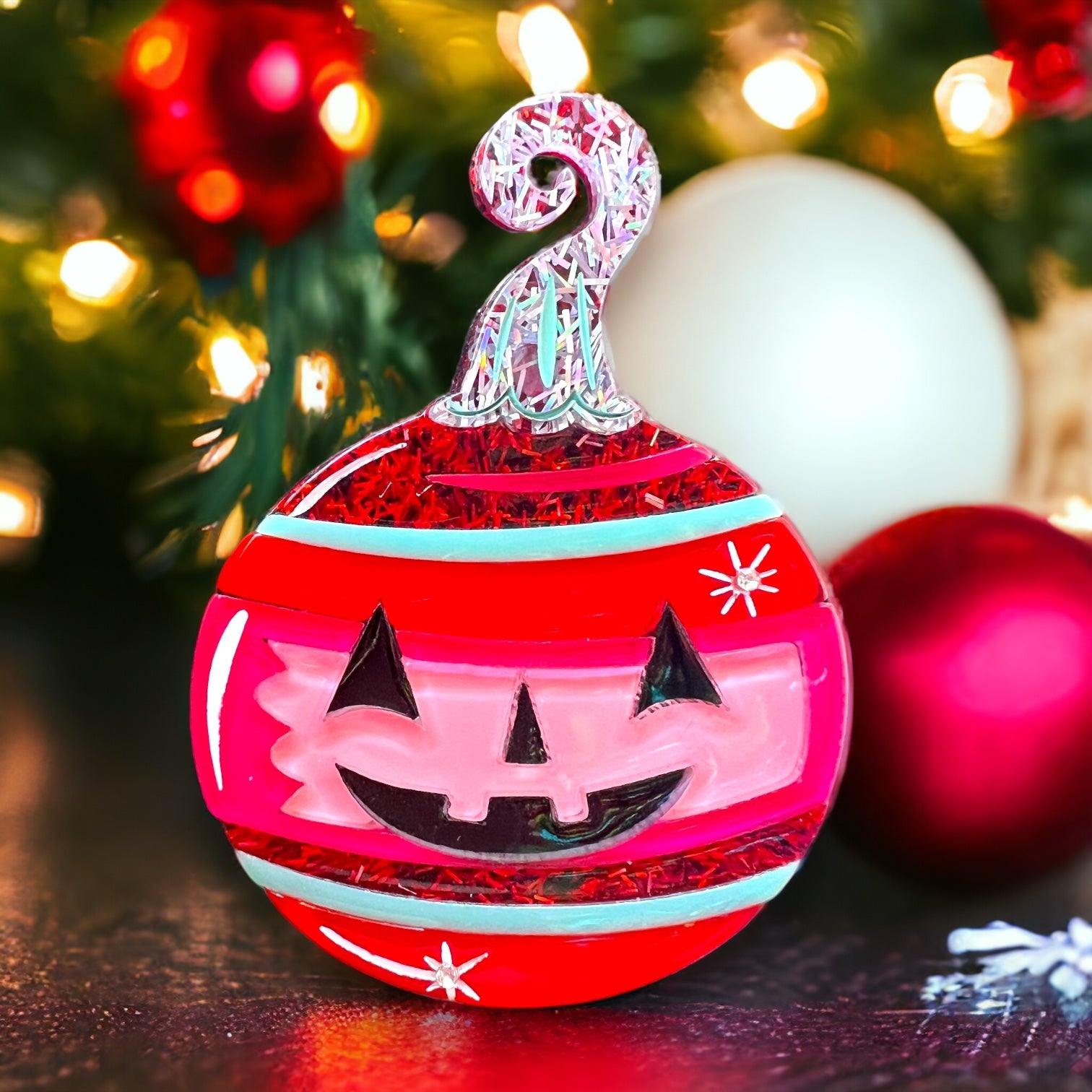 Give your look some spookalicious sparkle with this spooktacularly unique "Spookmas" ornament designed by Johanna Parker. With its vibrant colors, cool chrome mirrored resin and rhinestone accents, and frighteningly good style, this ornament will add a special haunted touch to your holiday decorations. Boo-tiful!