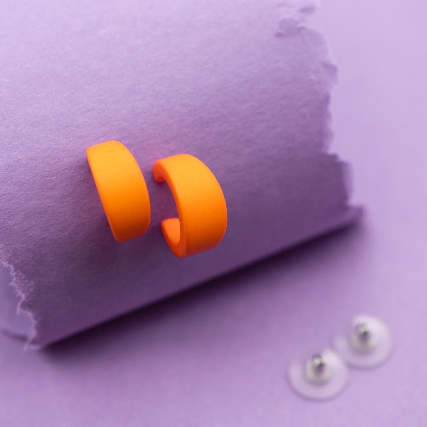 Sun Orange Velvet Matte Mini Boom Hoop Earrings