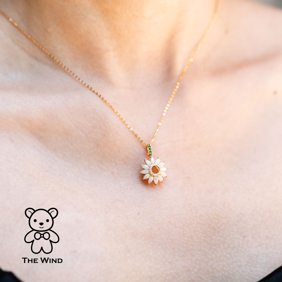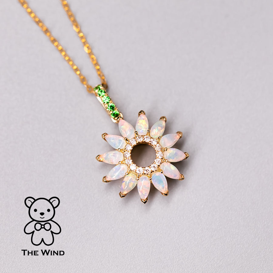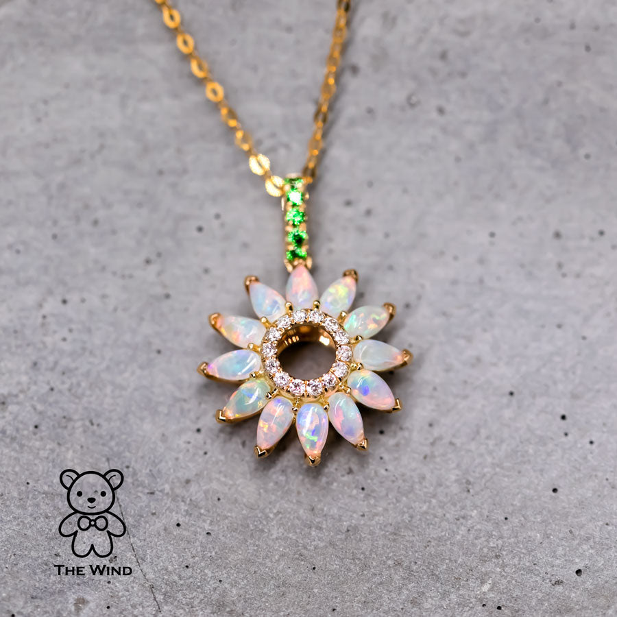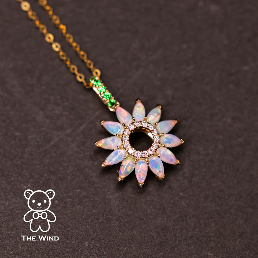 Sunflower Australian Solid Opal Tsavorite Diamond Pendant 18K Yellow Gold