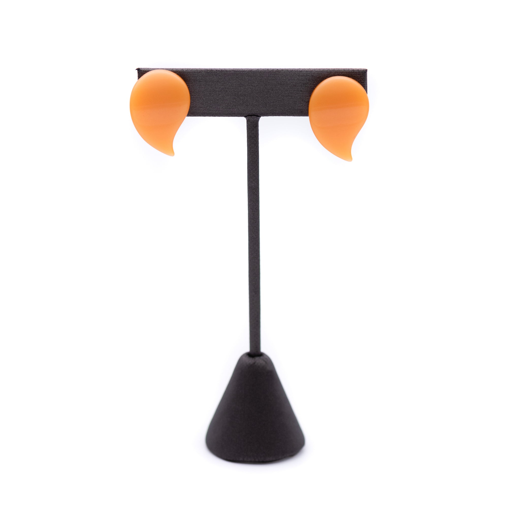 Tangerine orange moonglow studs in a retro fabulous shape. Bright sunshine orange with a moonglow finish. Each measures about 25mm in length and 17mm at the widest width.