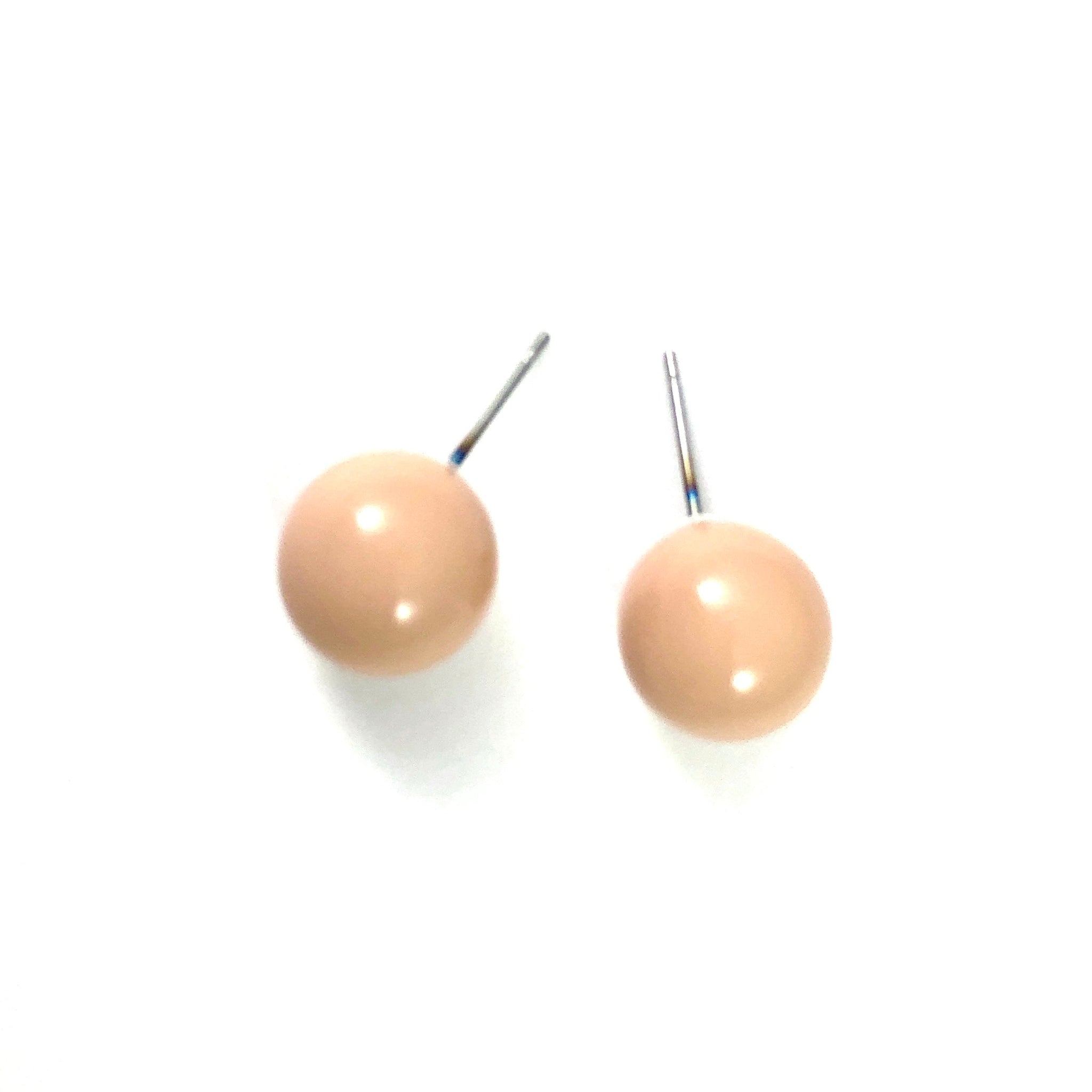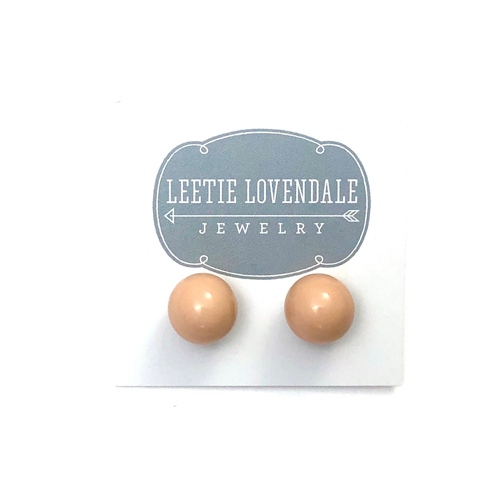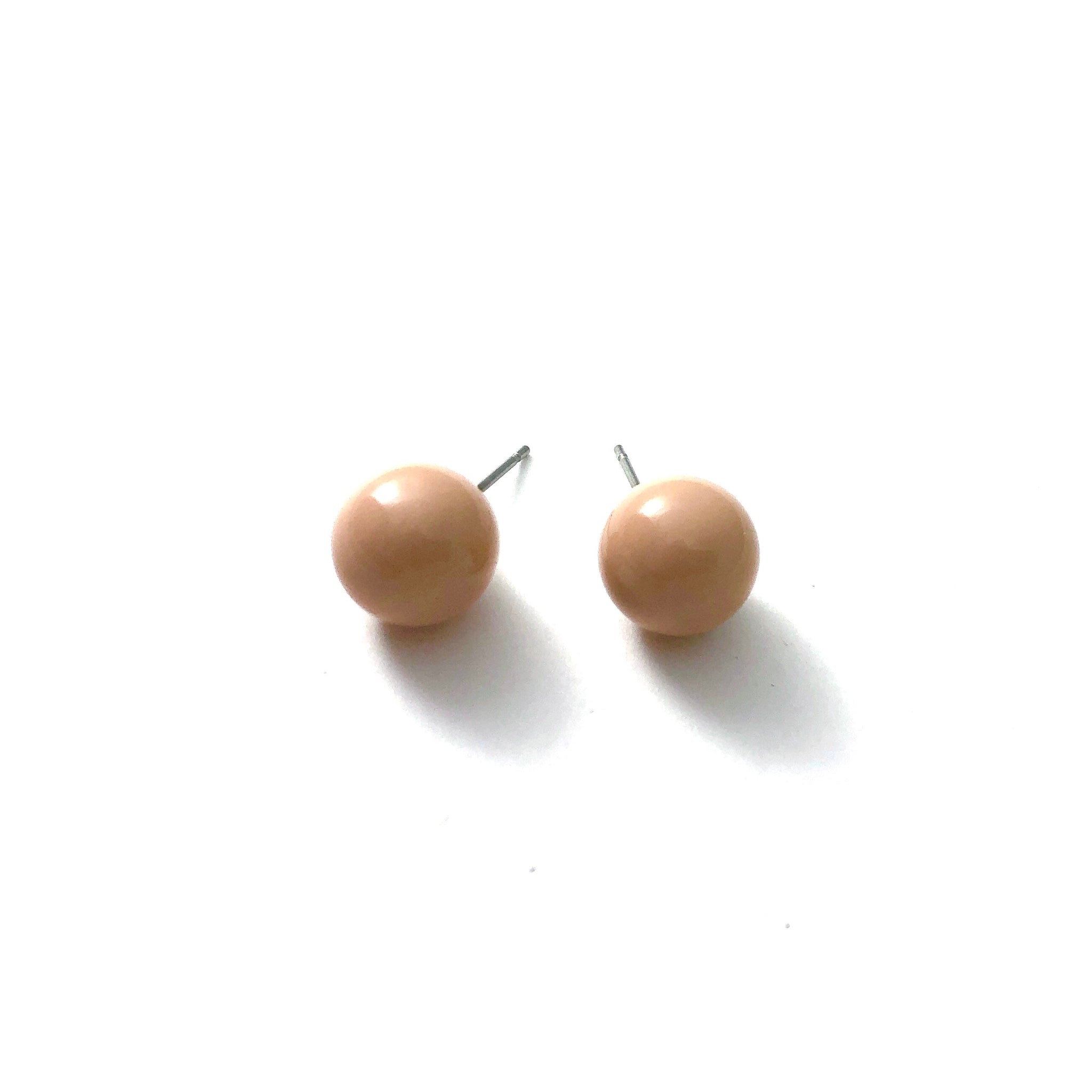 Taupe retro fabulous stud earrings in an opaque finish. Each post earring measuring about 12mm +/-. It's the perfect retro fabulous yet classic, and so today stud earring. See the model wearing this size in the fuchsia moonglow color, to give you an idea of the size & scale.