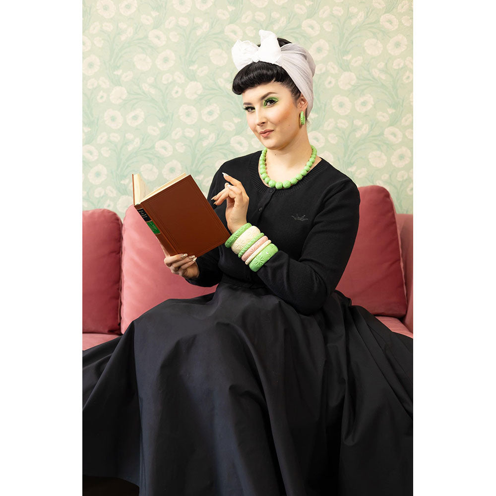 Say goodbye to boring jewelry - this 'Tea Heavy' necklace will be sure to turn heads. Crafted with a vintage 1940s style, the carved beads are made of beautiful tea green resin fakelite that will have you standin' out in the crowd. It's a gorgeous piece that will make sure you look as unique as you know you are!