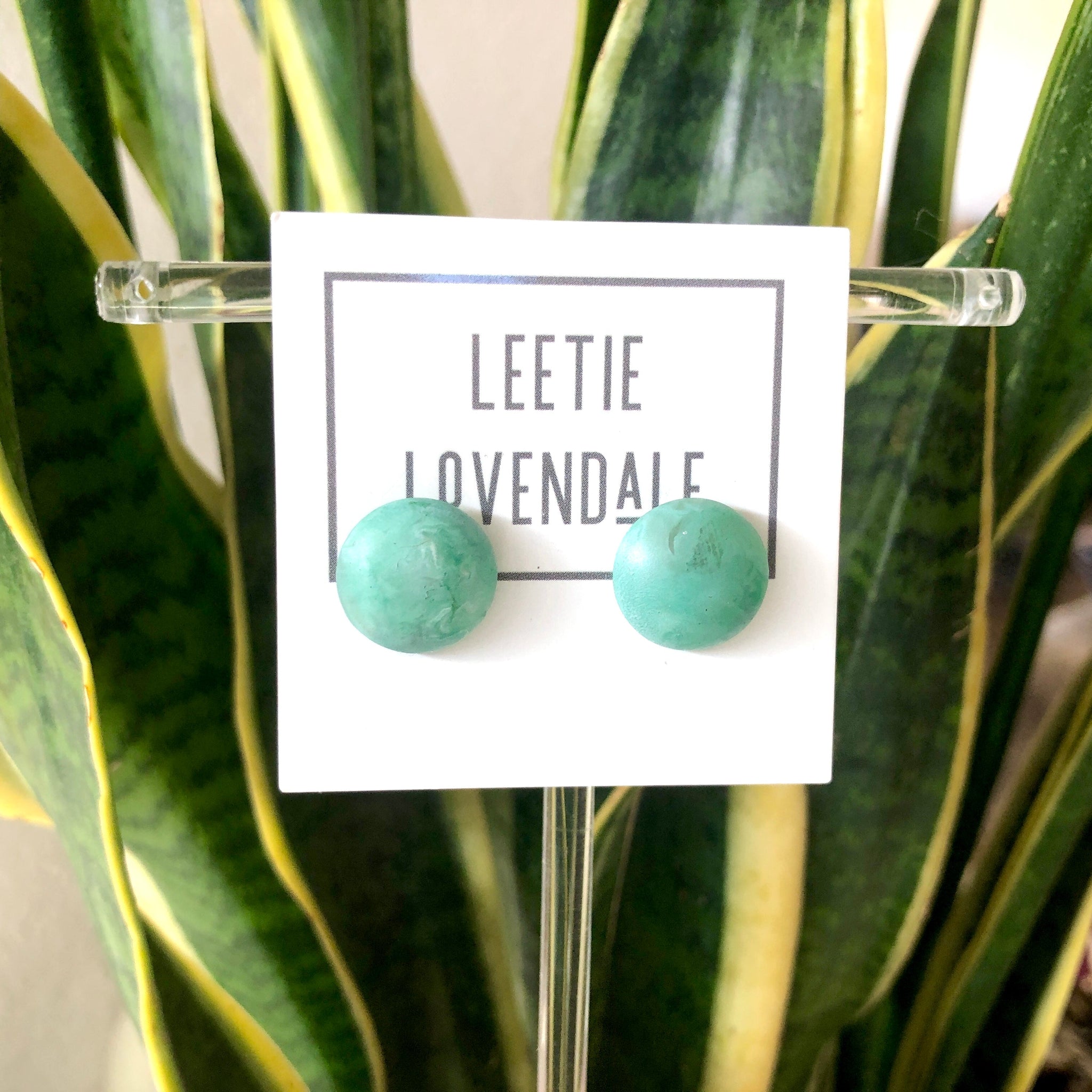 Teal stud earrings with a great marbling throughout & in a wonderful size & shape. These are part of the line known as the 'Retro Button Studs' and come in a variety of colors and sizes. This is the perfect size at 14mm.