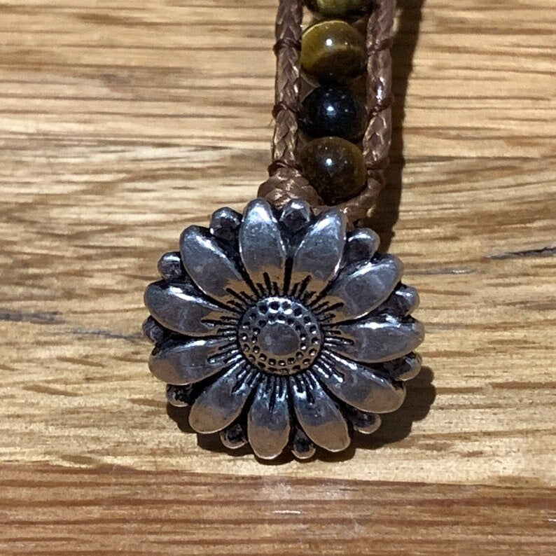 Material: Tiger Eye stones, Brass, Leather, Alloy.
