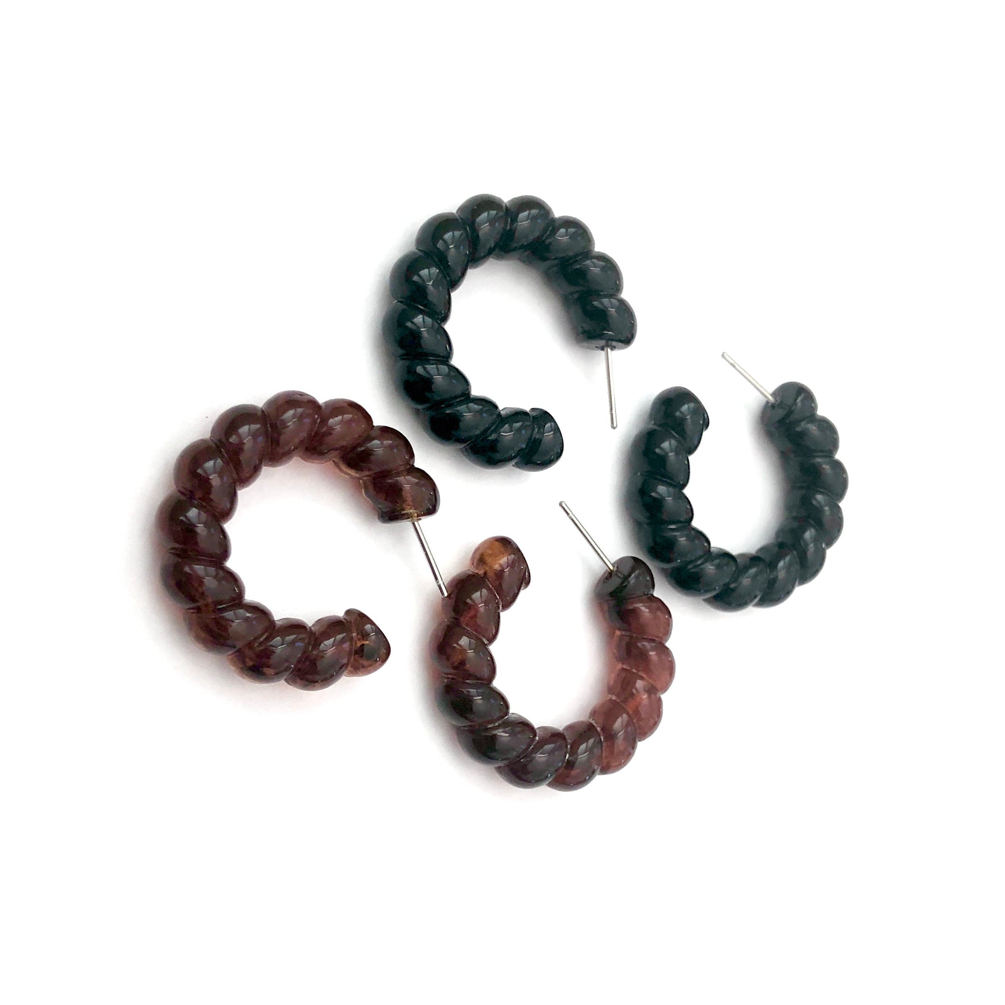 Tortoise Marbled Twisted Rope Hoop Earrings