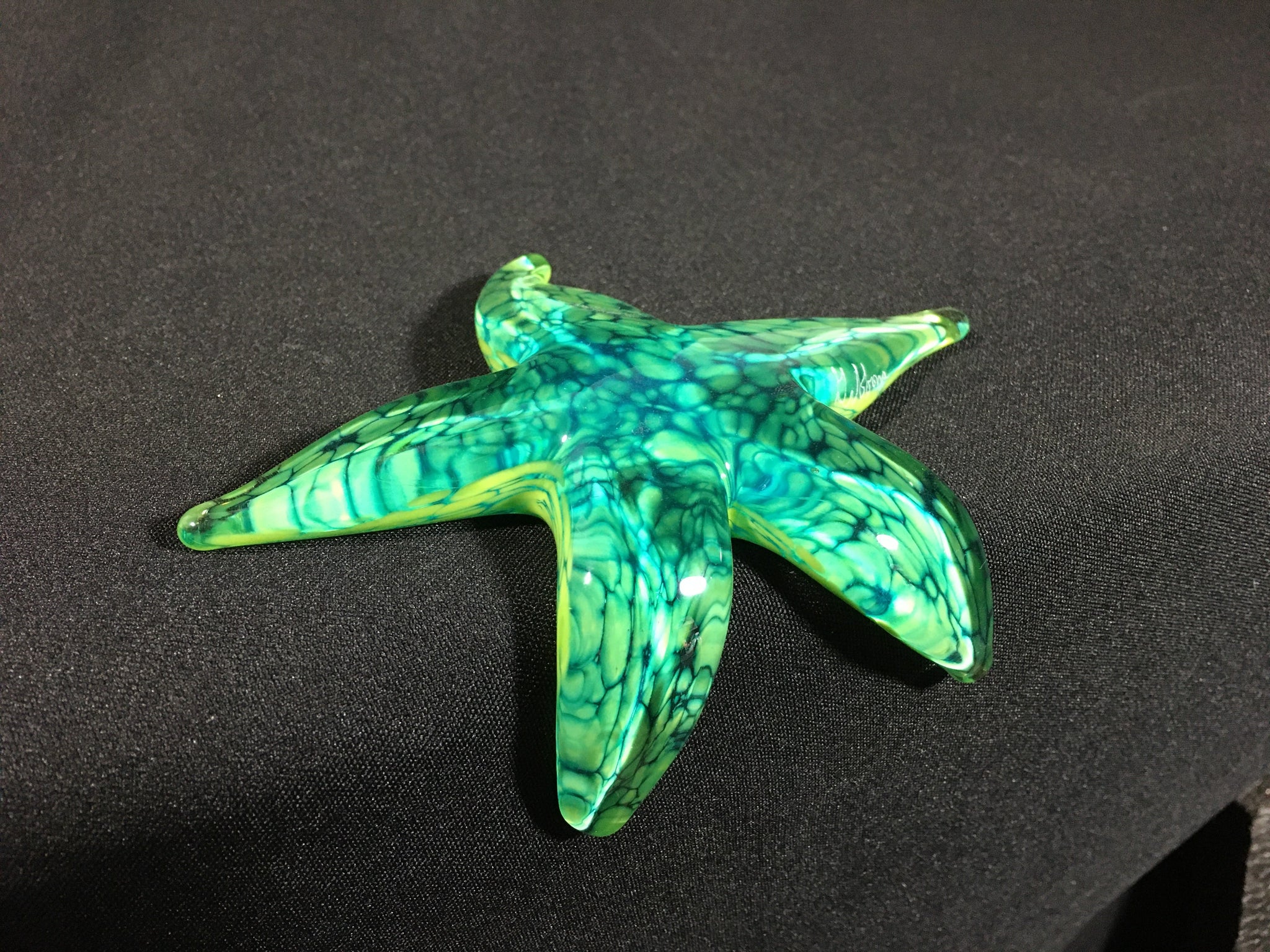 The Tropical Paradise Starfish is created with three layers of color on the bottom of the starfish, and a thick layer of clear glass added to the top, making the starfish optical and appear almost wet.