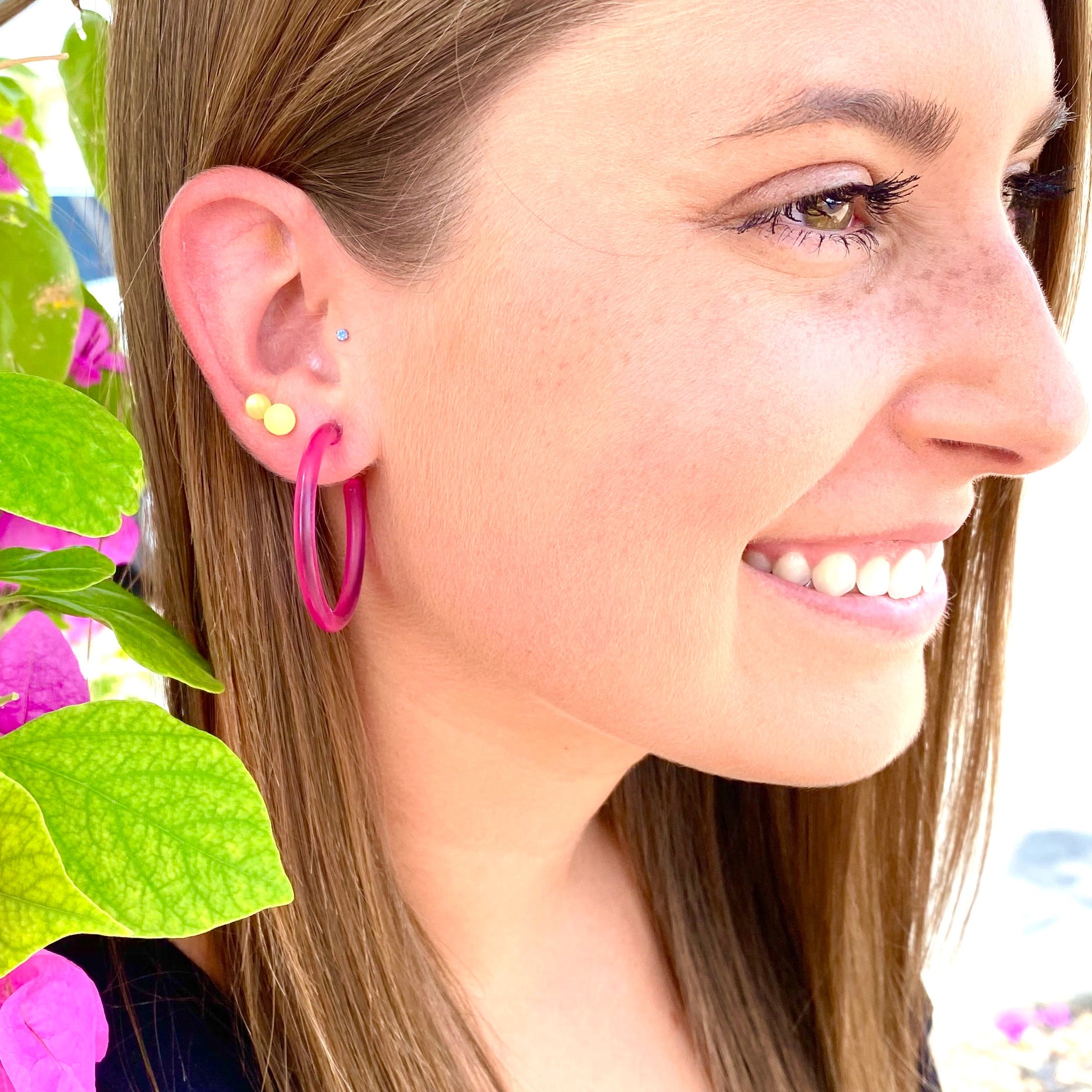 3 pair of fabulous lucite earrings in classic, need-to-have-it styles. All arranged on one card - so these make a great gift!