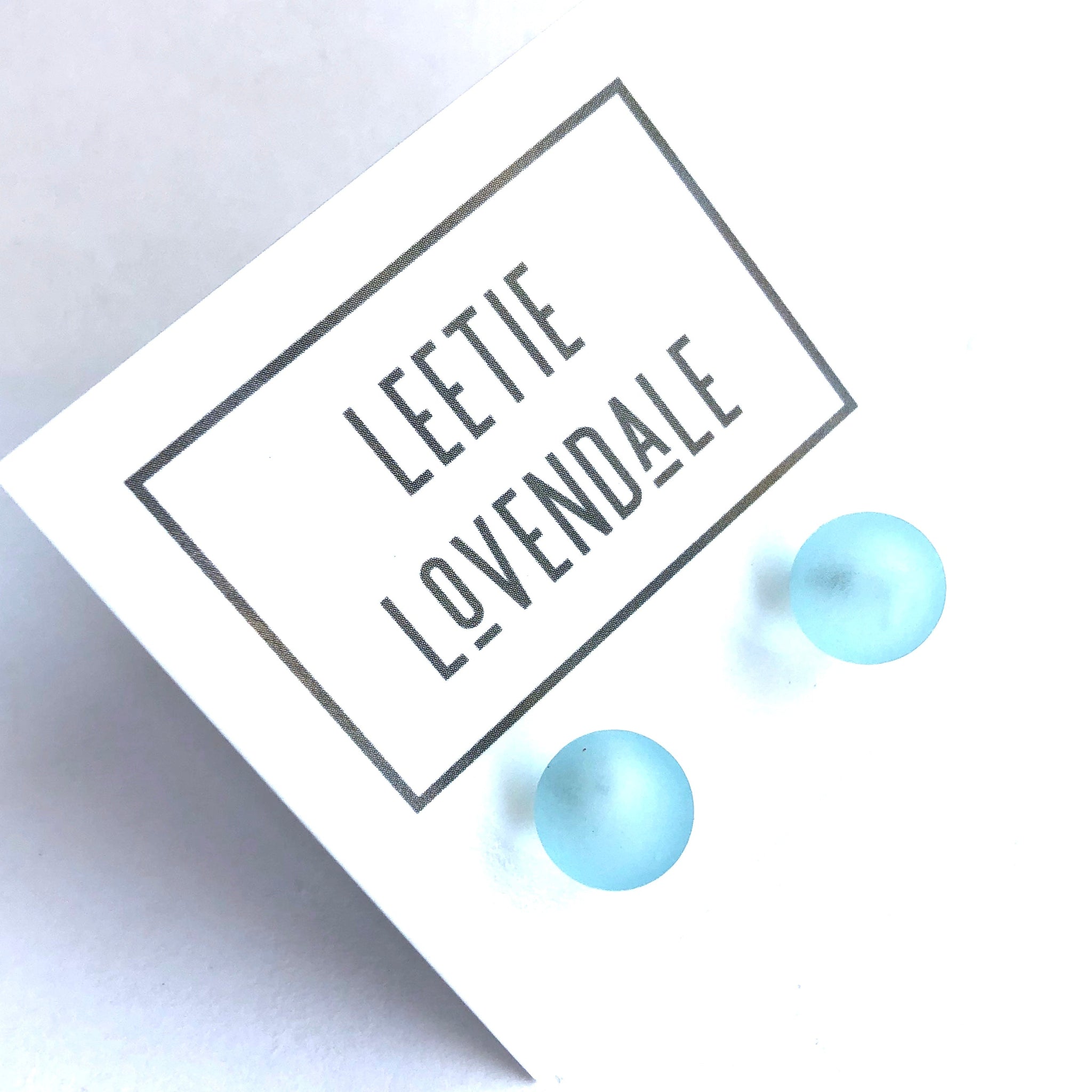 Turquoise blue dots for your ears. Each bead or post earrings measures approximately 10mm in diameter - a great classic size that will put that retro touch on your look and in a frosted finish. See the pic of this same style being worn in another color, for an idea of the size & scale.