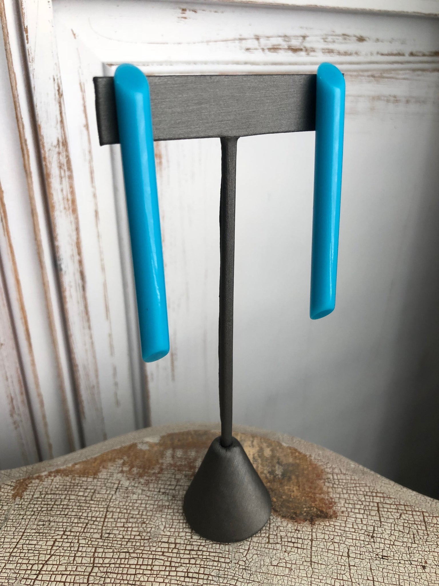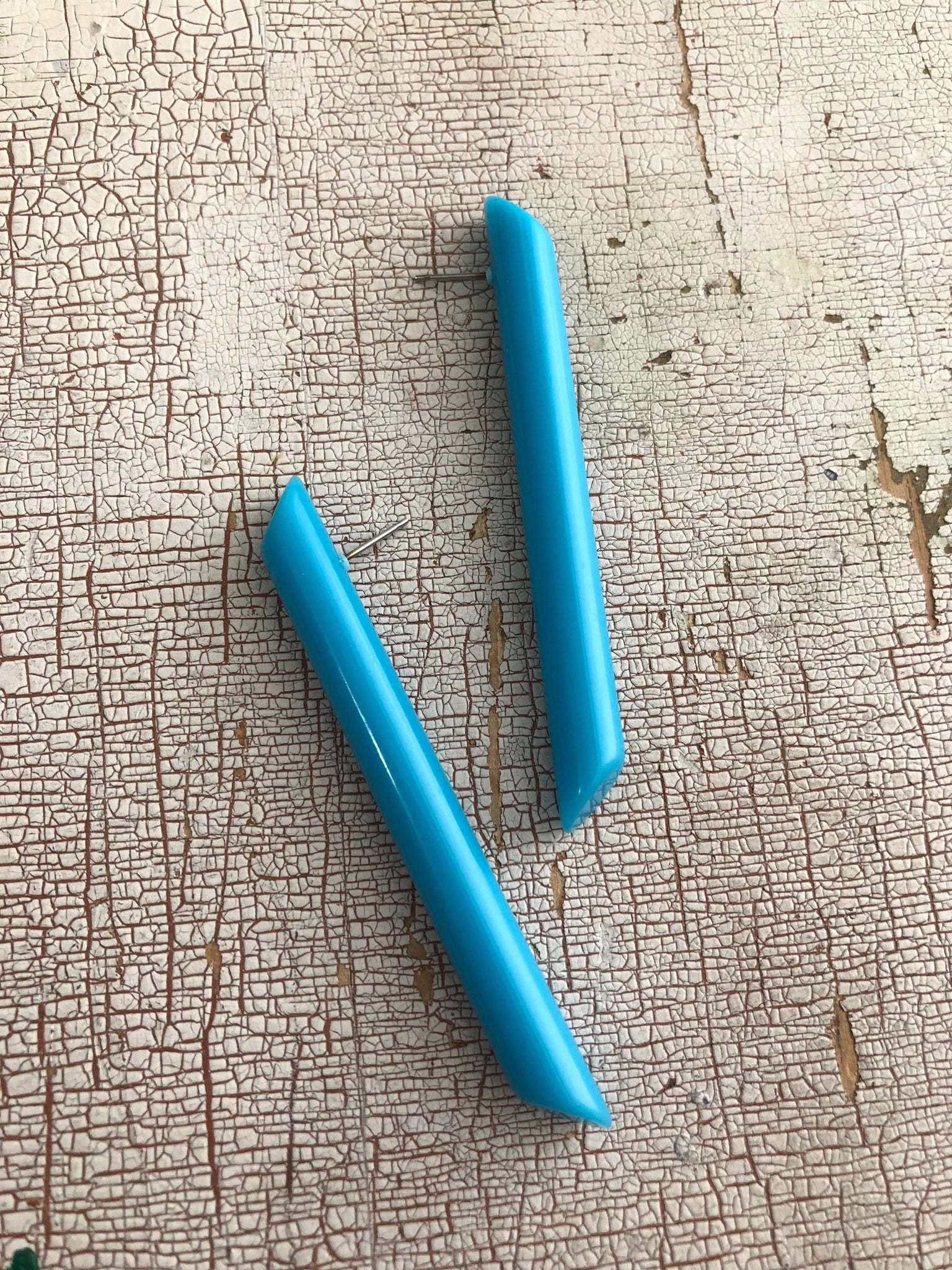 Turquoise stick stud earrings in a modern-meets-minimalist style. Vintage lucite earrings you won't find anywhere else. Sculpted stick drops in a bright aqua blue. Each measures about 3 inches long & 10mm in width in a size "skinny".