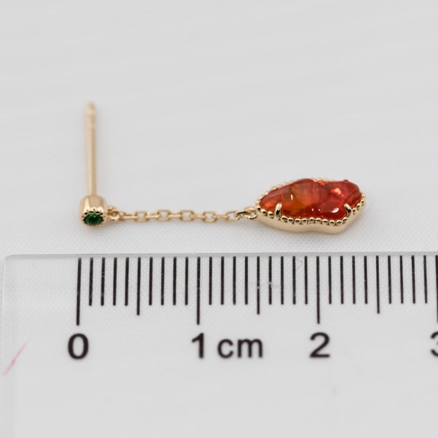 Two Colors Mexican Fire Opal Tsavorite Drop Earrings 18k Yellow Gold.