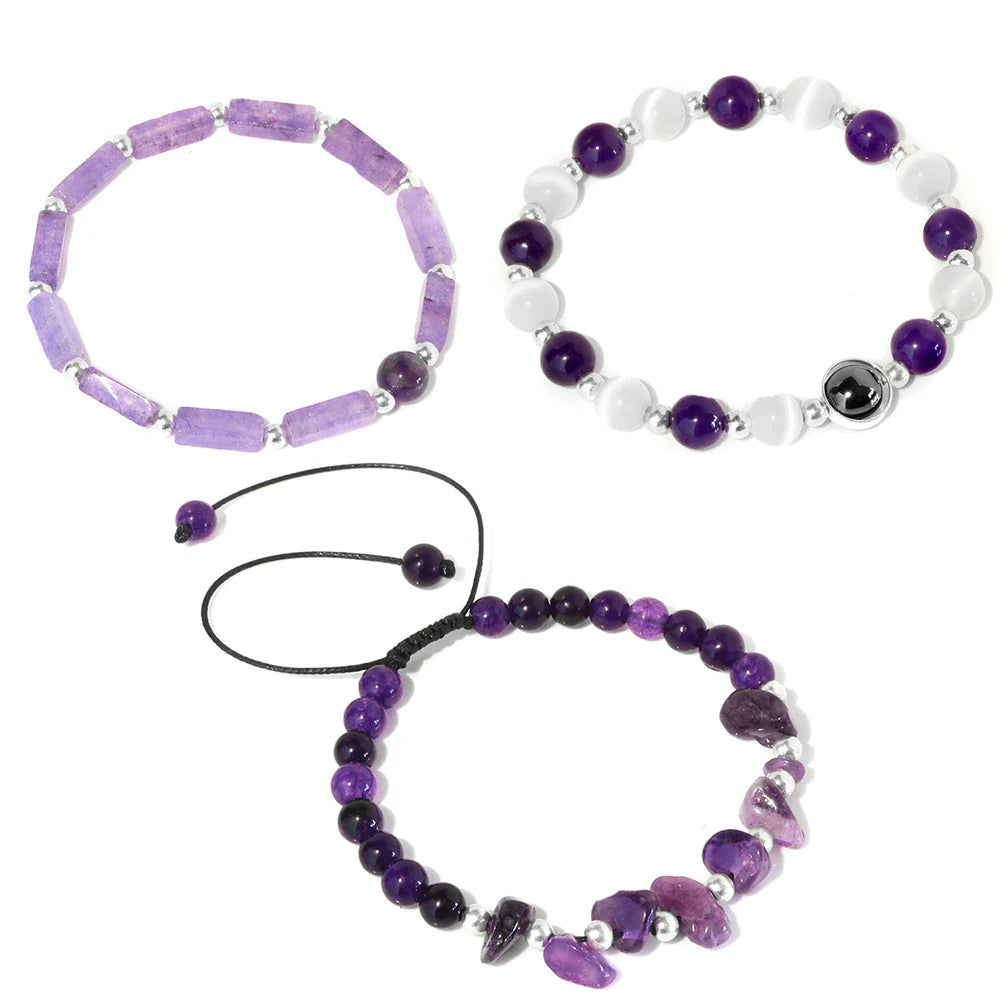 Our Weight Loss & Stress Relief Bracelet Pack actively generates positive energy in your body. This energy aids in weight loss and stress reduction. The pack includes Amethyst, Hematite, and Selenite, which work together to create a unique tool for your journey.
