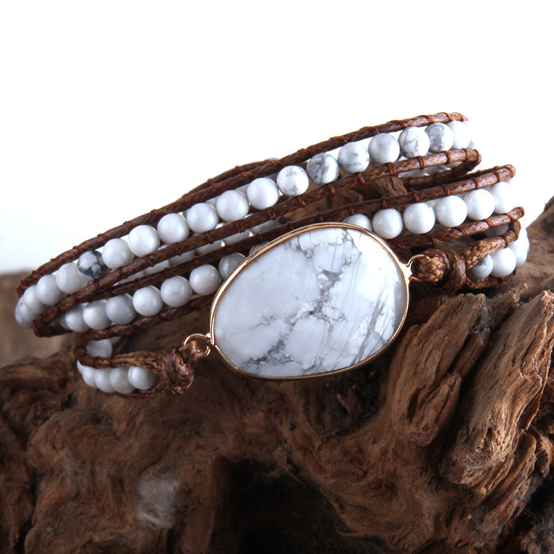 - Material: White Turquoise stones, Brass, Leather, Alloy.