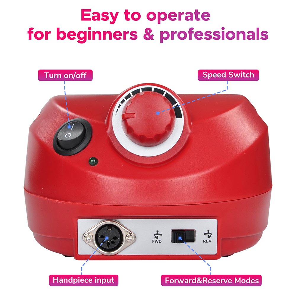 You are viewing an professional electric nail drill machine with foot pedal control which is great for all types of nail work from sculpting, buffing, to polishing.