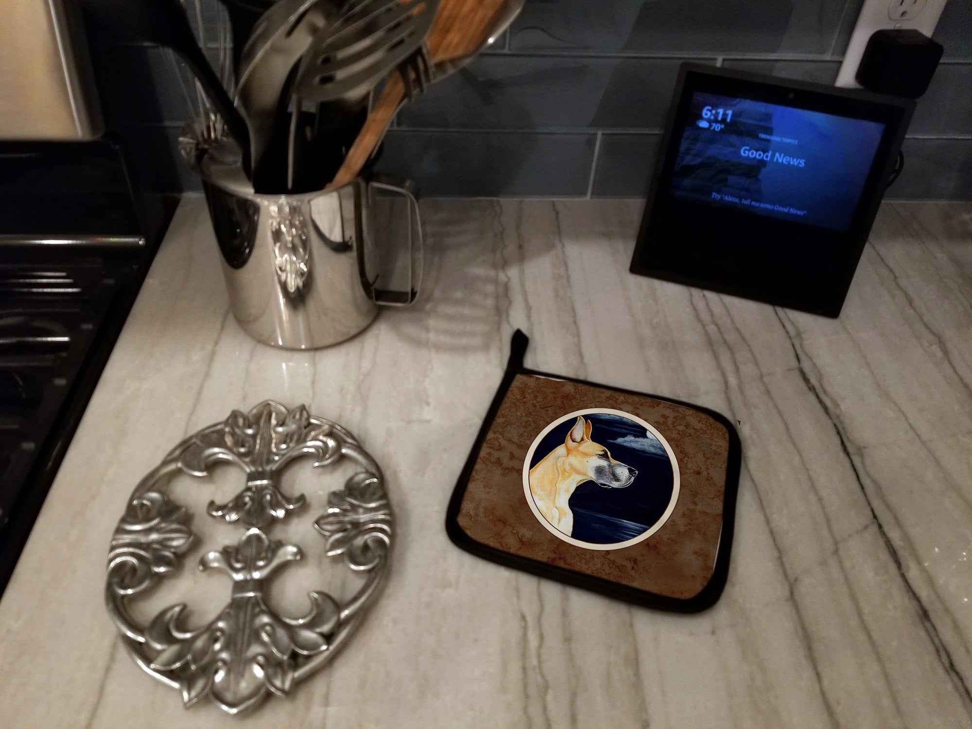Fawn Great Dane Moonlight Stroll Pot Holders - Set of 2 Decorative Kitchen Helpers | Made in the USA 7100PTHD