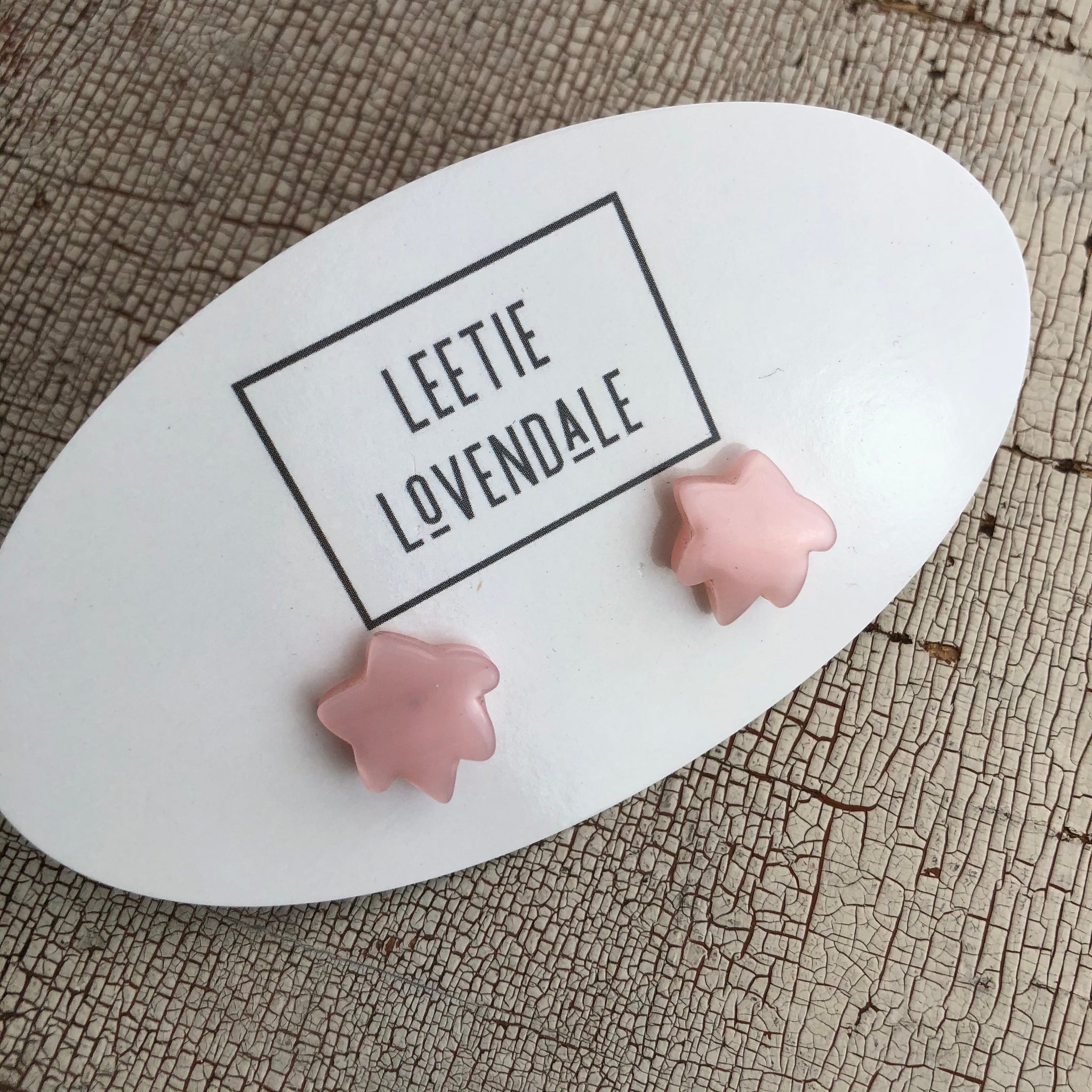 Leetie Lovendale earrings are made with vintage lucite parts originally made for designers, leftover stock that was made in the 1960's - early 80's. We hand-set & sculpt with them & set them with surgical steel earring posts and they have sturdy surgical steel/acrylic backings on them as well.