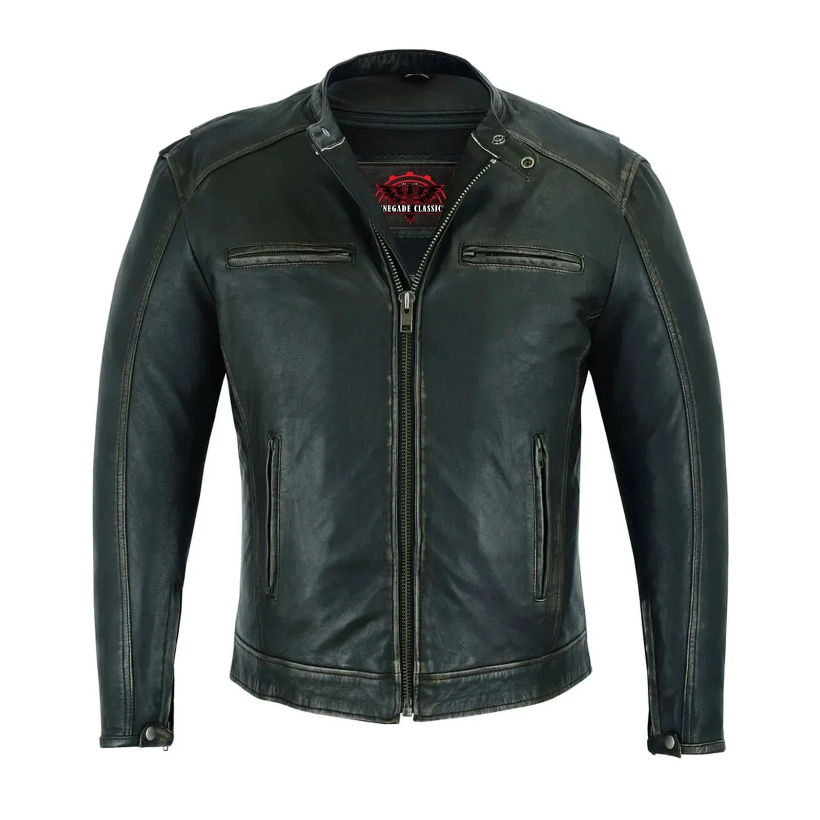 Modern fit and full opening zippered sleeve cuffs.