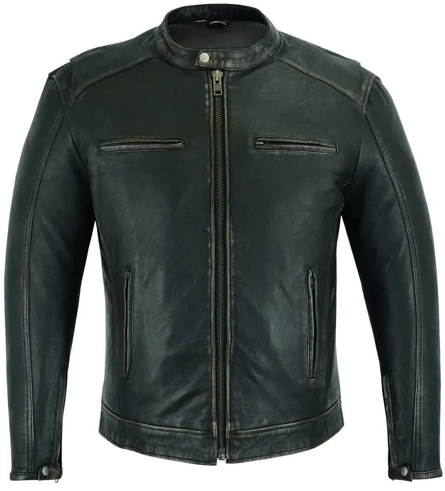 Men's Cruiser Jacket in Lightweight Drum Dyed Distressed Naked - Olive