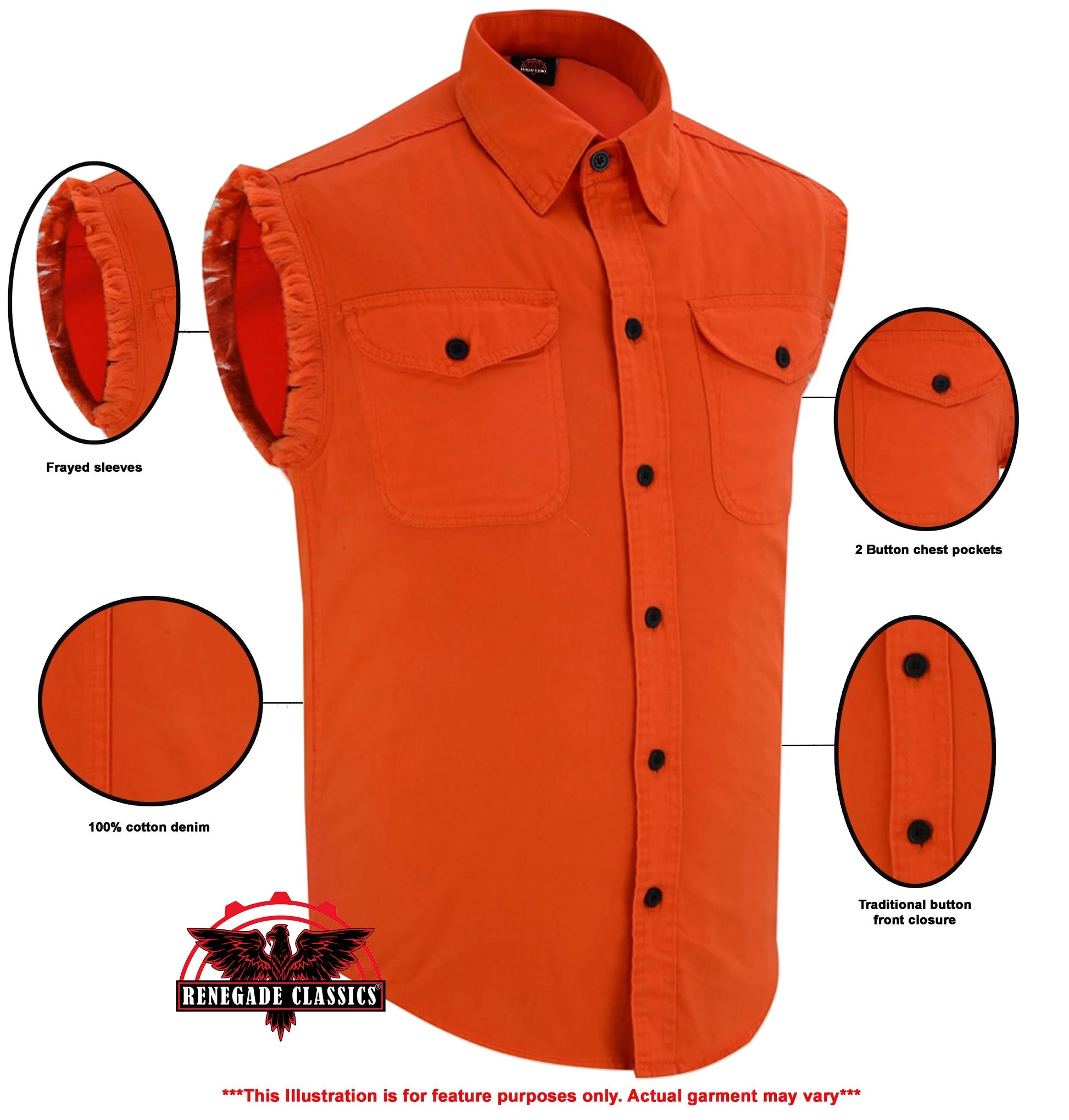 Men's Orange Lightweight Sleeveless Denim Shirt