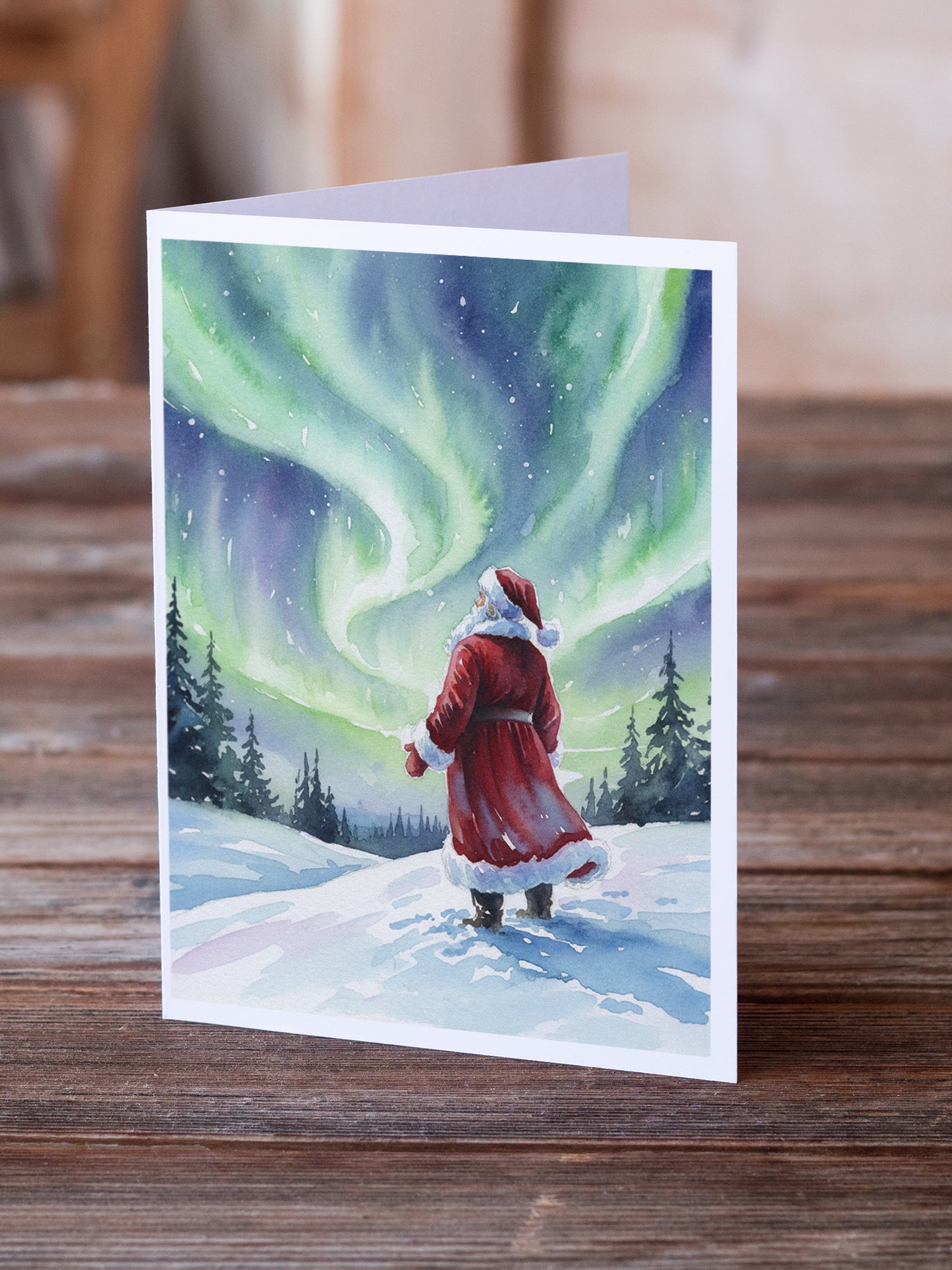 Santa Claus Watching the Northern Lights Christmas Greeting Cards Pack of 8